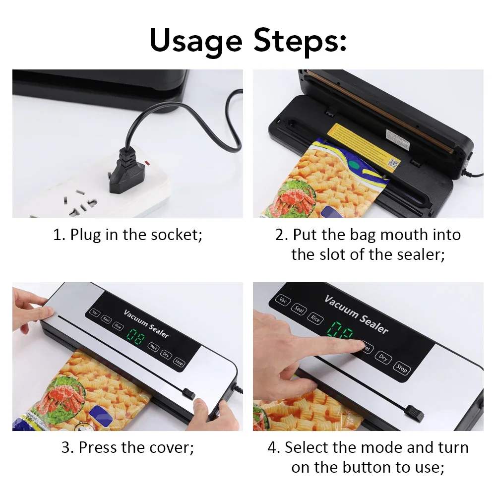 2. Whether sealing dry, wet, oily, powdered, soft, or crispy foods, this food vacuum sealer machine ensures a tight seal, providing optimal storage for a wide range of food items.