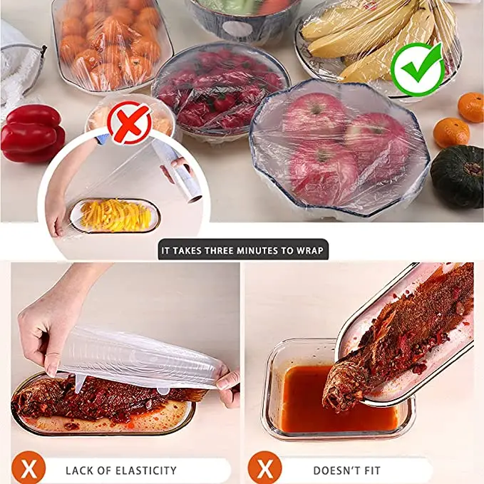Perfect Design: The elastic mouth design can closely fit the bowl. Elastic ring are suitable for containers of various shapes. High-quality materials are not easy to tear and can be reused. Suitable for high or low temperature environment