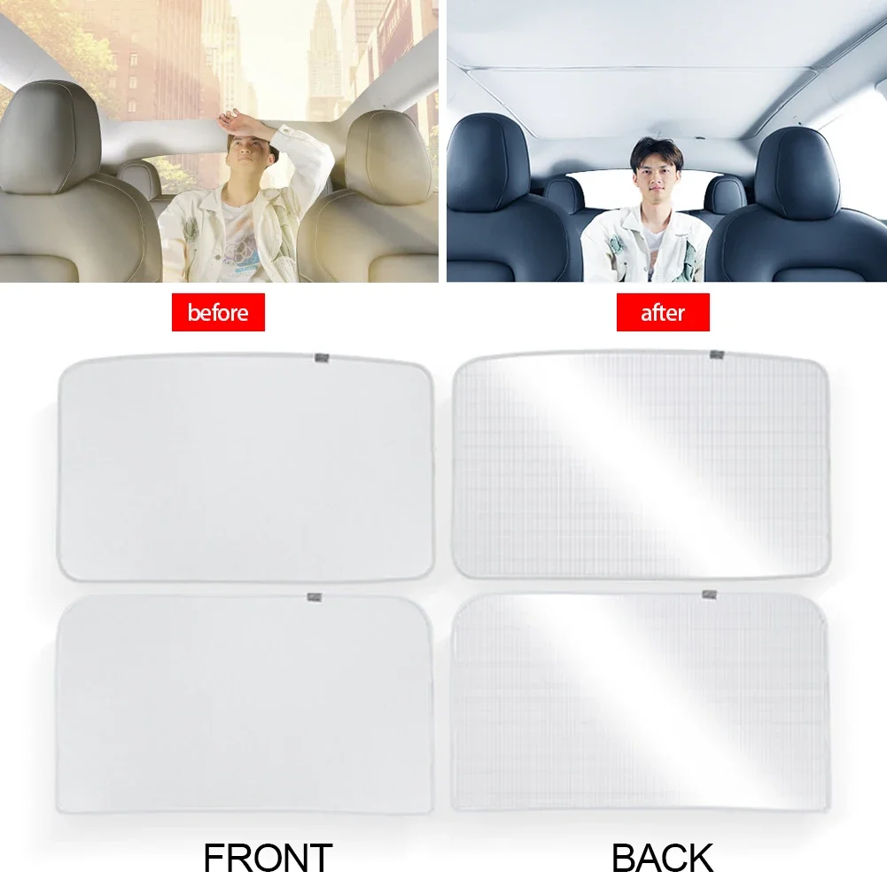2Pcs Car Glass Roof Sunshade Front Rear Open Sunroof Windshield Shade Net UV Protection Interior Cover For Tesla Model 3 Y