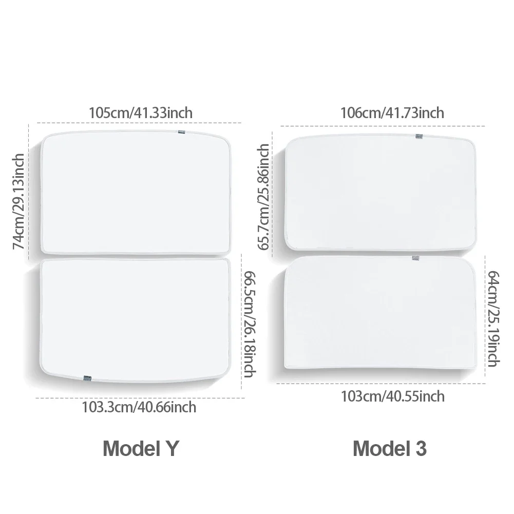 • Model Y Size:105cm/41.34inch x 74cm/29.13inch;103.3cm/40.67inch x 66.5cm/26.18iinch.Model 3 Size:106cm/41.73inch x 65.7cm/25.86inch;103cm/40.545inch x 64cm/25.19inch;
