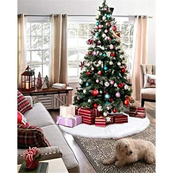 🧿➤ Luxury Christmas Plush Tree Skirt--Premium Plush Christmas tree skirt 48 inch Snow white warm soft,Perfect Christmas tree skirt to dress your tree,The favorite spot for Pets in winter.🧿➤ Suitable For Anywhere--Perfect for Homes, Offices, Party, Schools, Shops, Outdoor, etc.Make a wonderful decorations for your Christmas.🧿➤ Excellent Workmanship--Double layer design, extremely well made. Slit to fit lined on the bottom your tree and can be stored for many years!🧿➤ Easy Installation--Hook and loop is seaming on the border of tree skirt, Easy to install fits quickly.You can place Christmas gifts, decorations on the tree skirt, and create a gorgeous decoration for your Christmas tree!Every family should have it!