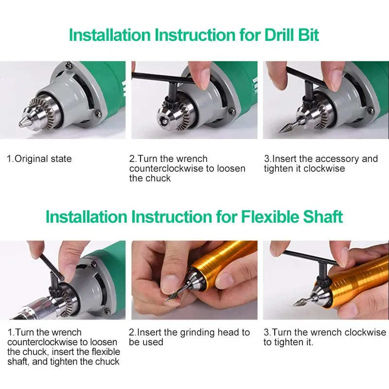 ✸ Compatible Grinding Head: Double-mesh Cutting Disc, Sandpaper Ring Grinding Head, Wire Brush Grinding Head, Emery Cutting Disc, Alloy Bit, etc.
