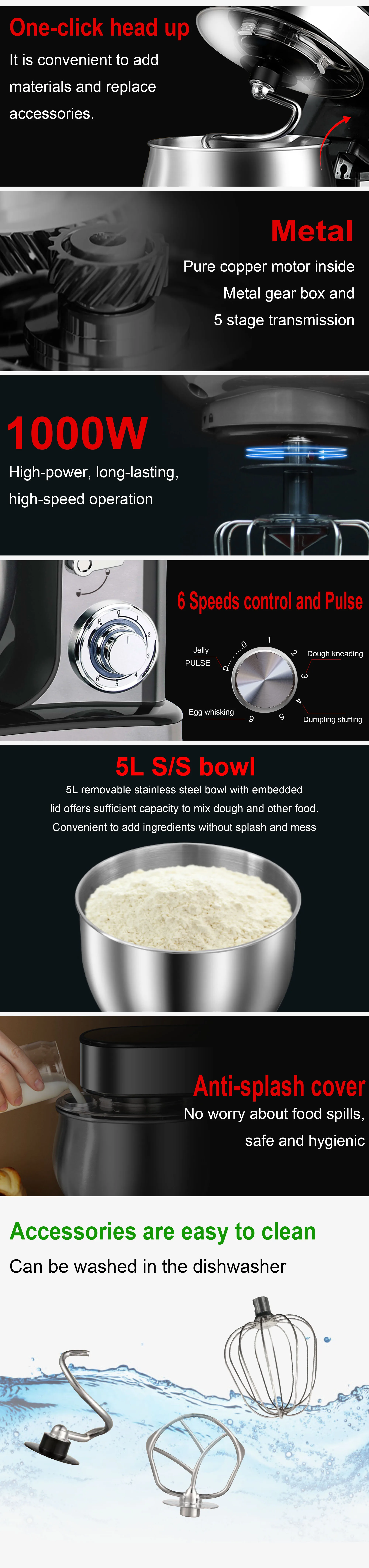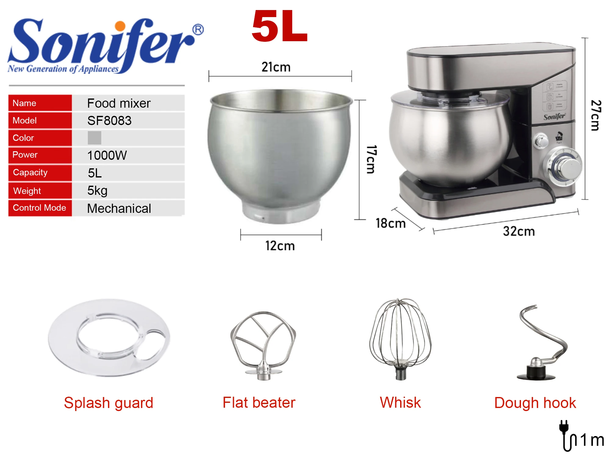 5L Stand Mixer Kitchen Aid Food Blender Cream Whisk Cake Dough Mixers With Bowl Stainless Steel Chef Machine Charm Sonifer