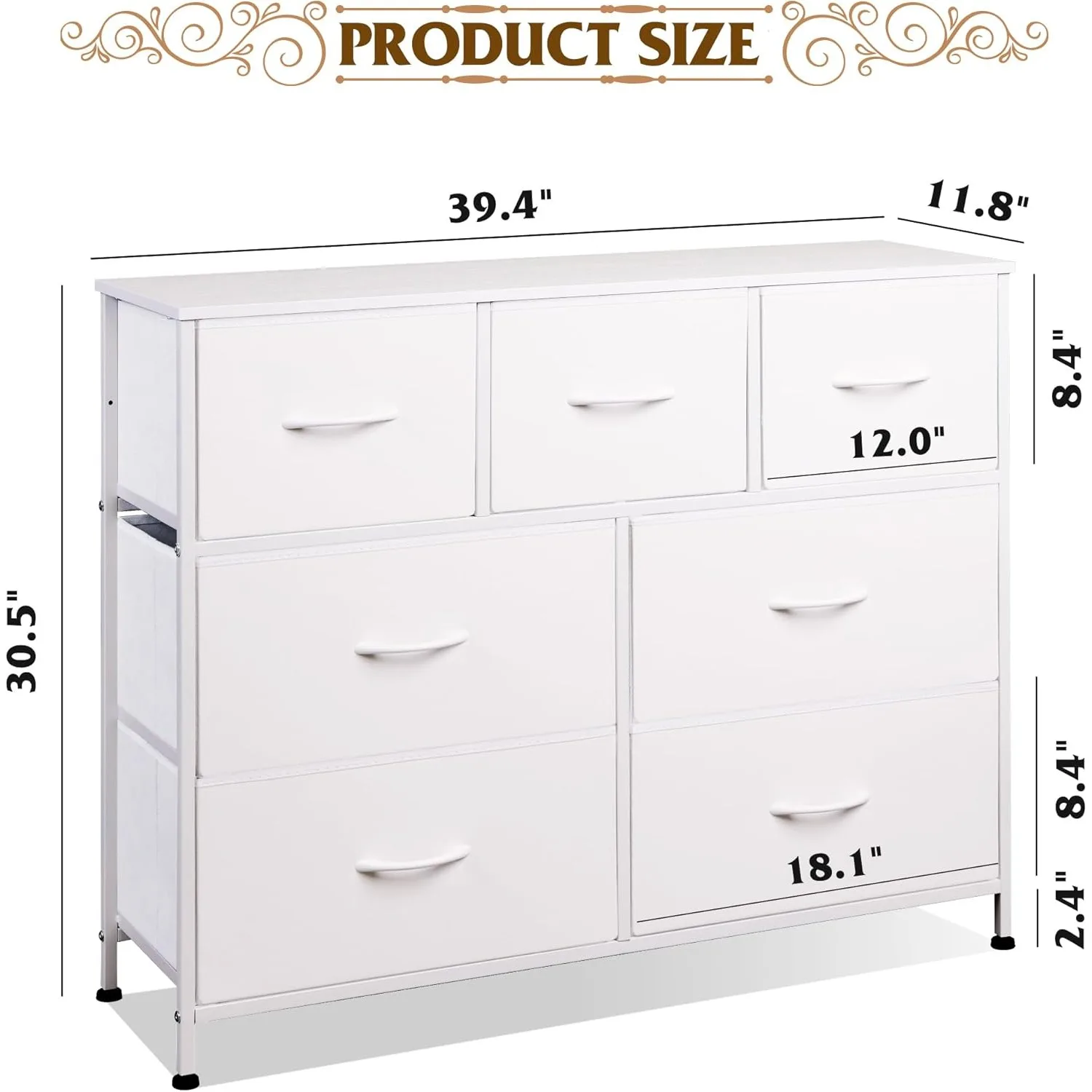 • Roomy Storage Space: The dresser features 7 foldable deep drawers, which provide endless organizational possibilities and protect your privacy as well. The wood top is perfect to place vase, photos, mirror and frequently used items.