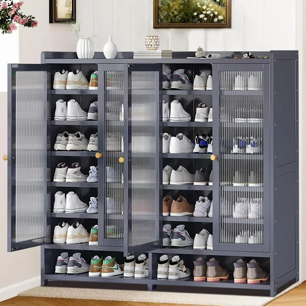 【Storage Assistant】The shoe rack with six closeable compartments, one top platform, and one open compartment enable multi-function storage, allowing you to quickly put on and take off shoes and store them in the open compartment. Multi layer storage allows you to categorize shoes for a neat lifestyle.