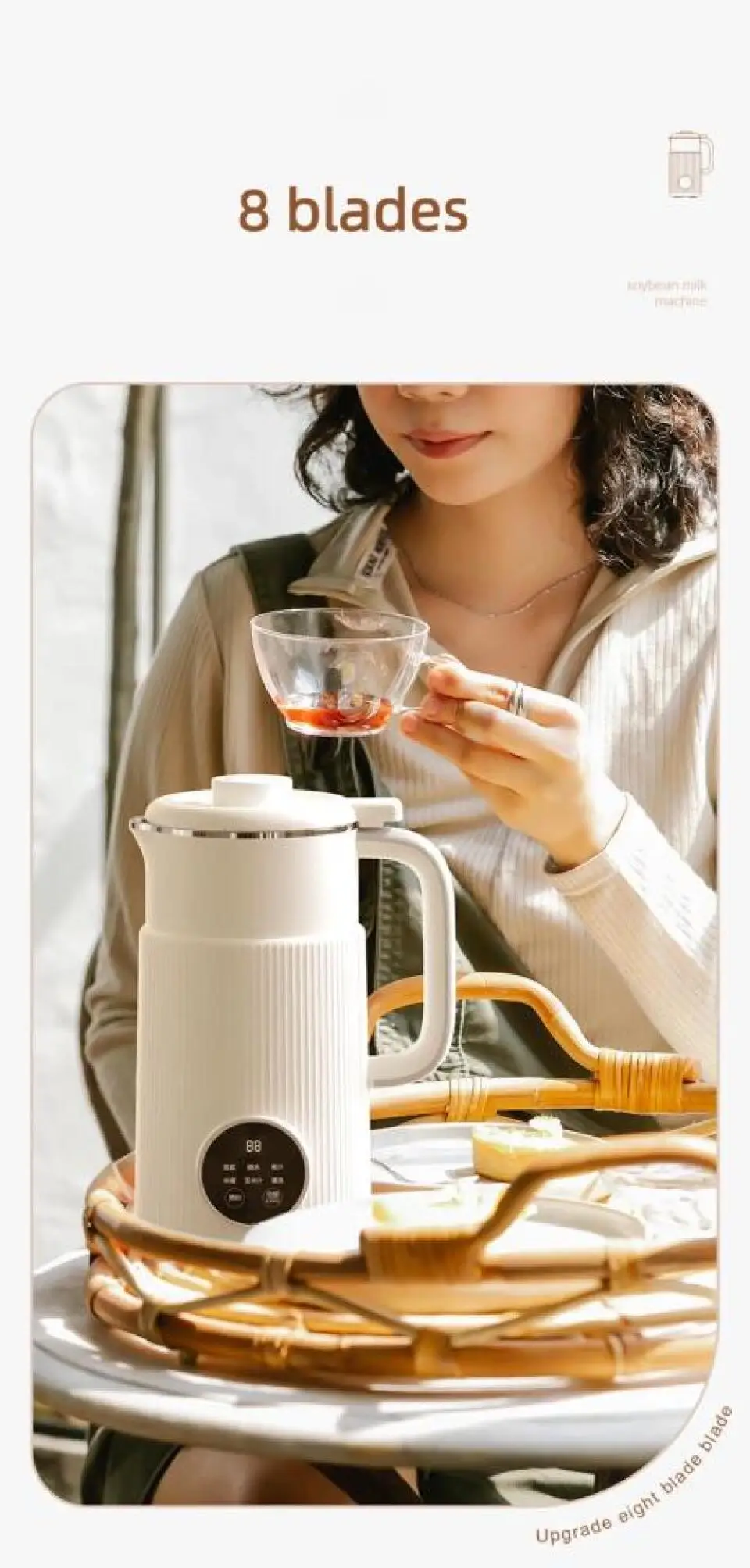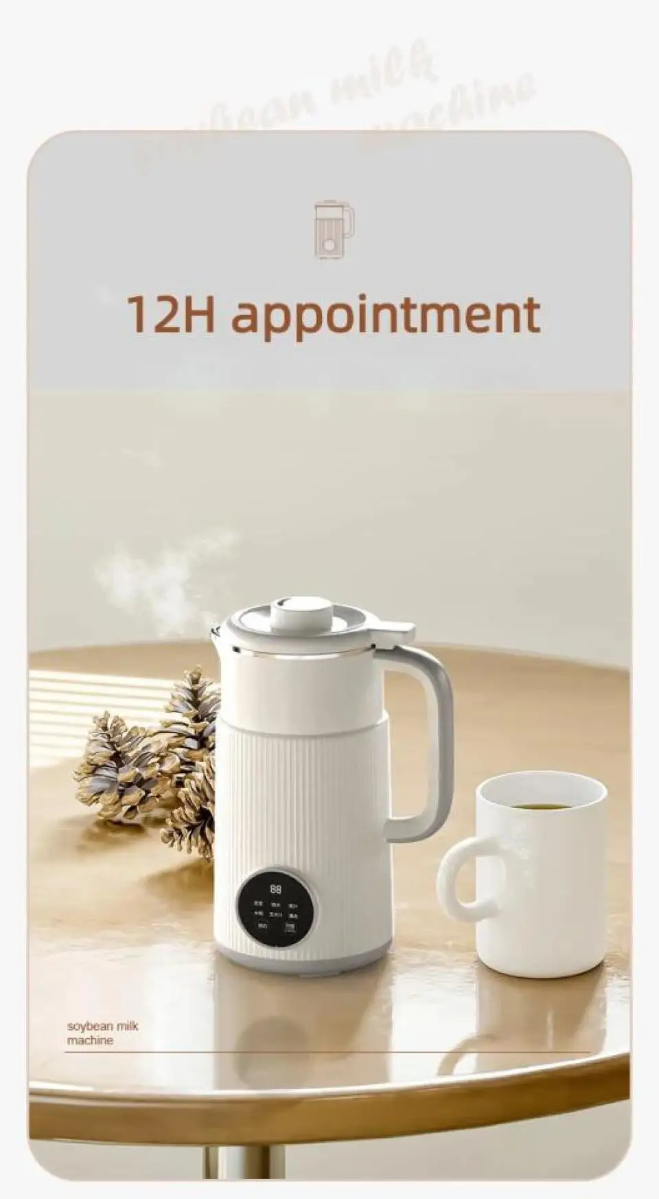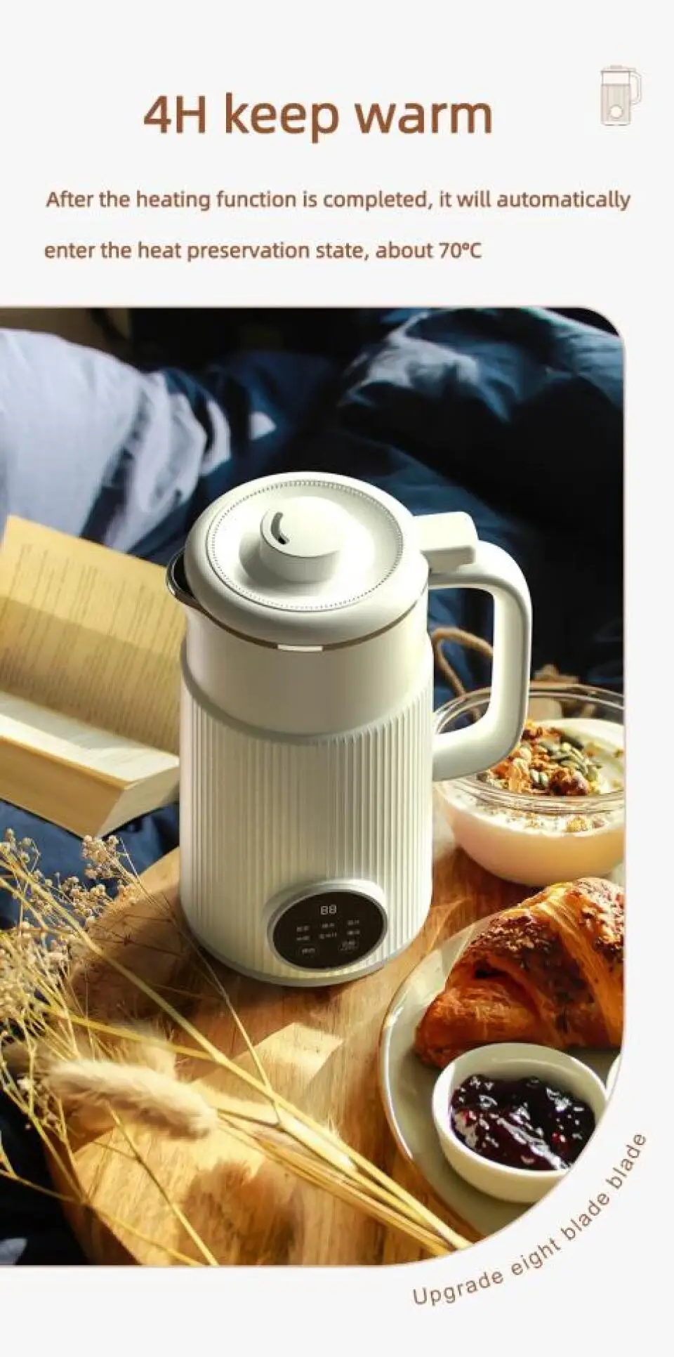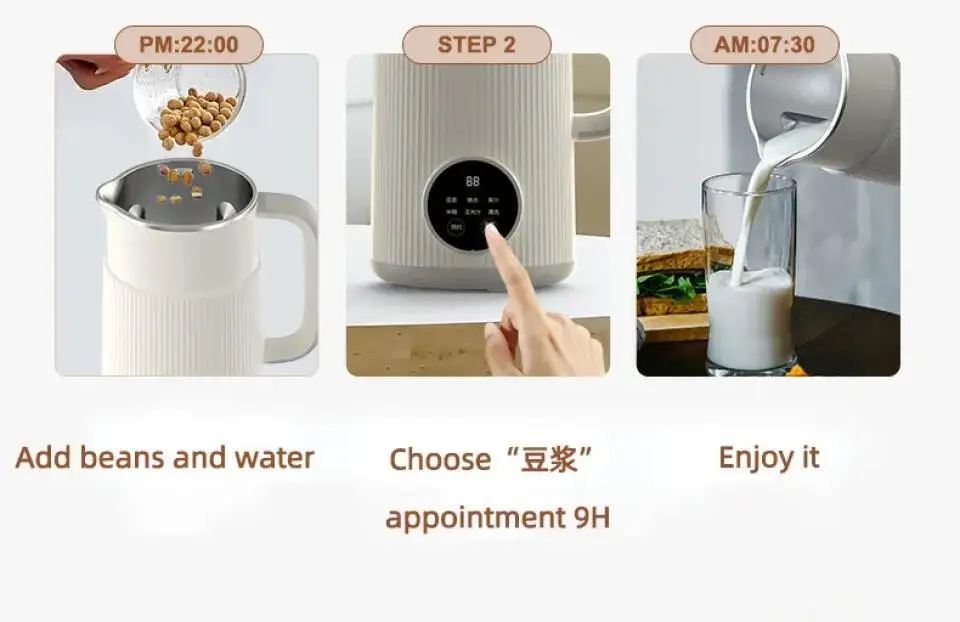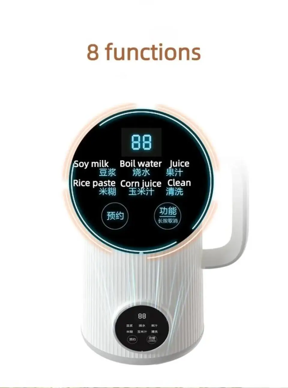 3. Eight functions: soybean milk, boiled water, juice, rice paste, corn juice, cleaning appointment, heat preservation.