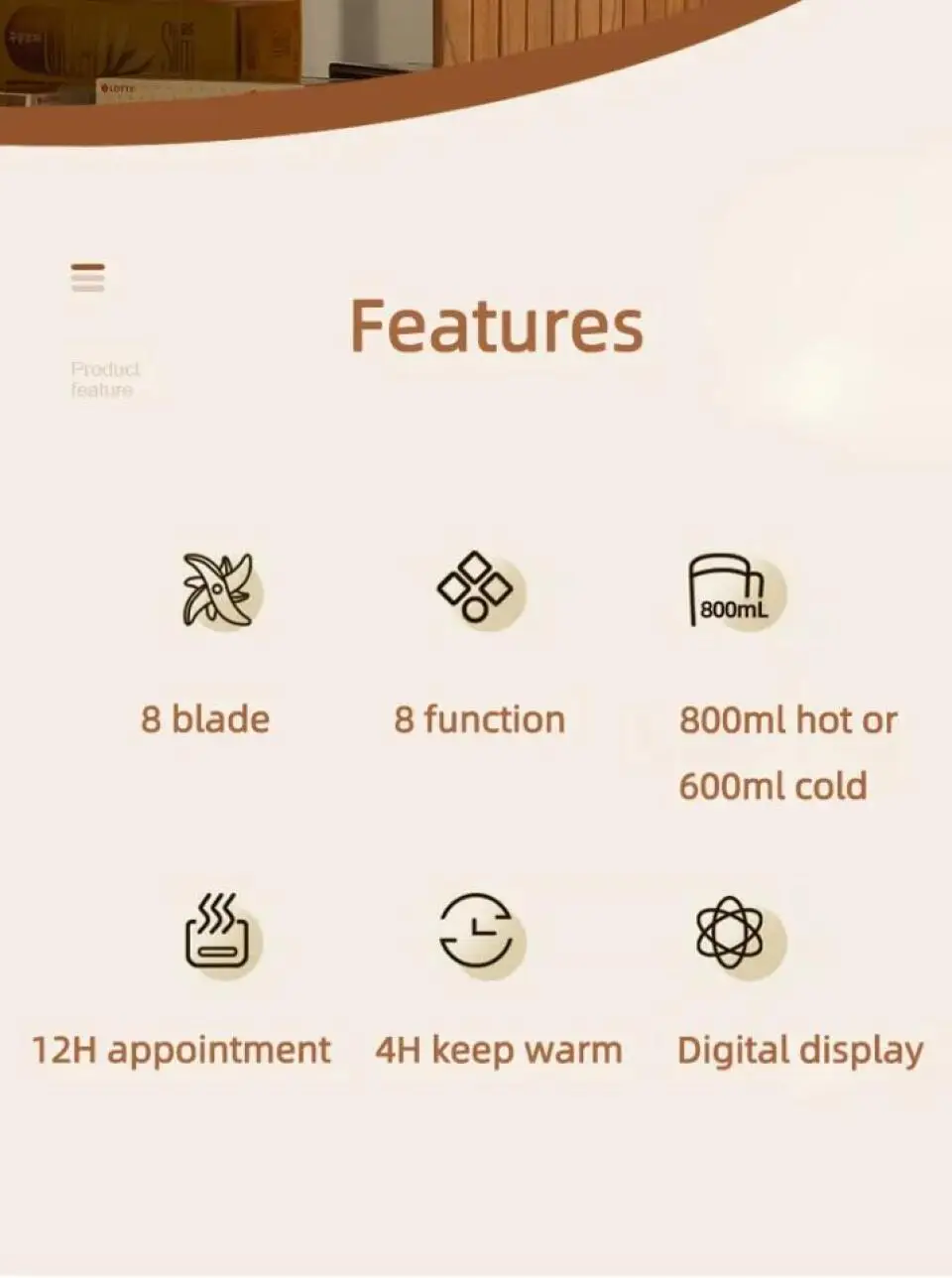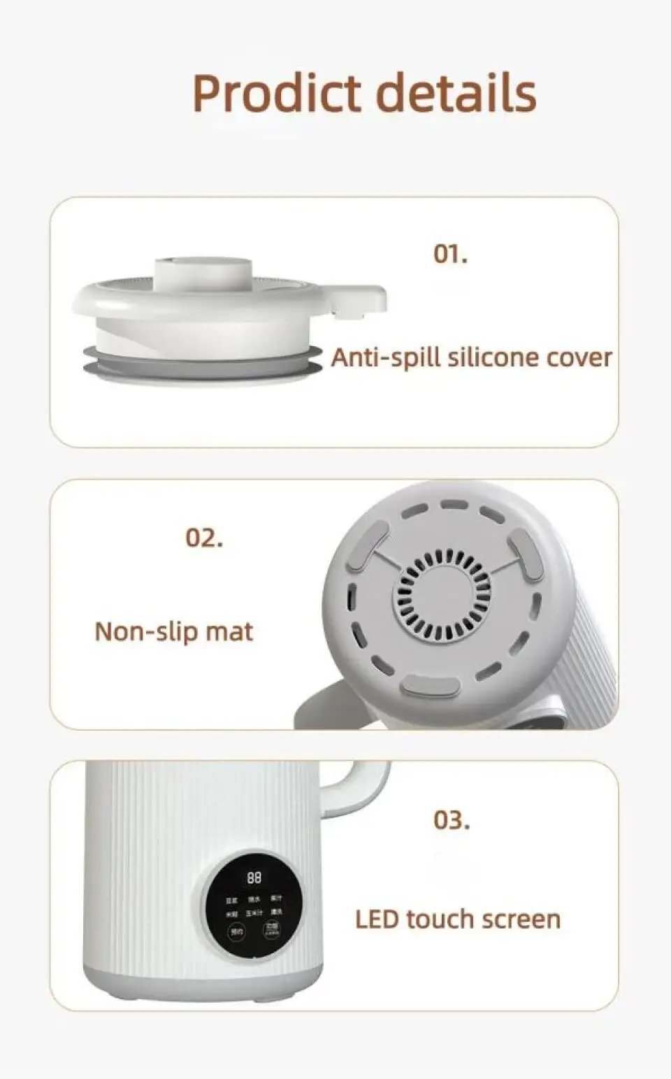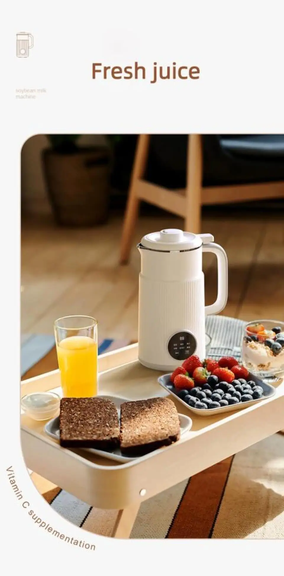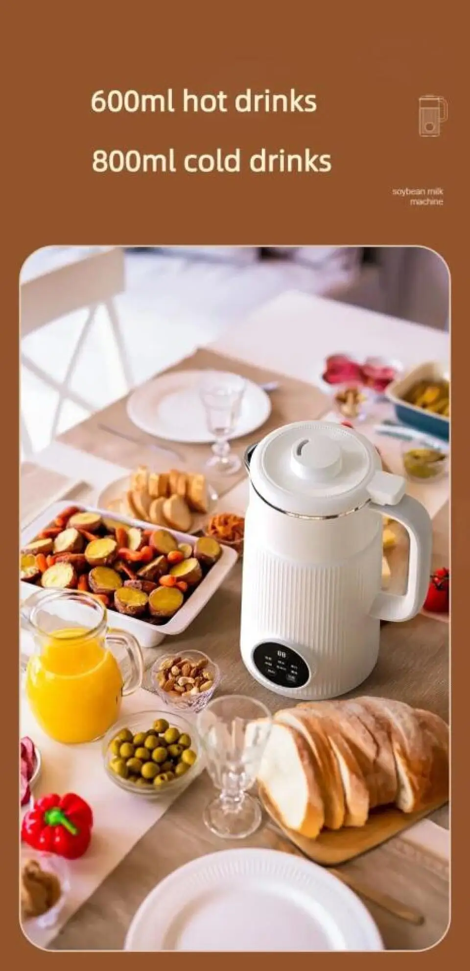 3. Eight functions: soybean milk, boiled water, juice, rice paste, corn juice, cleaning appointment, heat preservation.