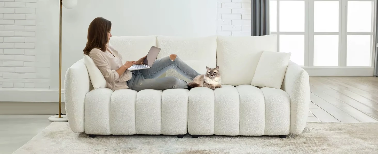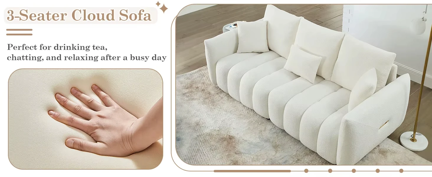 Sturdy Structure: Teddy cloud sofa selects high-quality solid wood raw materials and durable plastic legs, and the seat can withstand a weight of 750 pounds. It will last a long time in your living space. The stable and comfortable sofa is perfect for drinking tea, chatting, and relaxing after a busy day