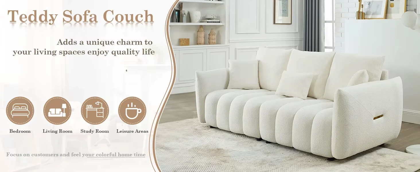 Plush Comfort: The modern sofa is made of teddy fabric, which has good breathability and is not easy to wrinkle and fade. The seat cushion is filled with foam to provide you with a comfy and pleasant experience. The 24.7" deep-seated sofa fits your body perfectly, allowing you to enjoy all-round cozy