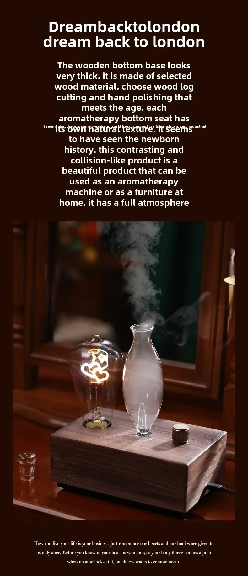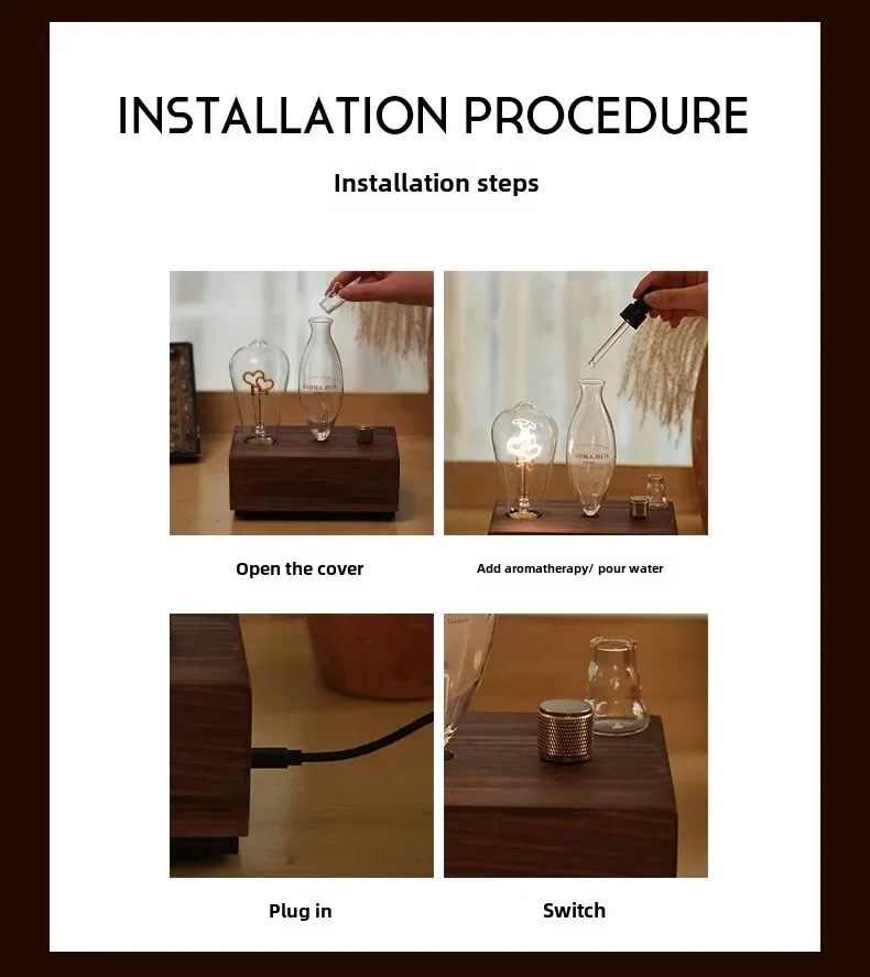Water-soluble essential oils:adding water-soluble essential oils will produce a small amount of mist after turning on the aromatherapy machine, and the aroma will slowly radiate into the air.