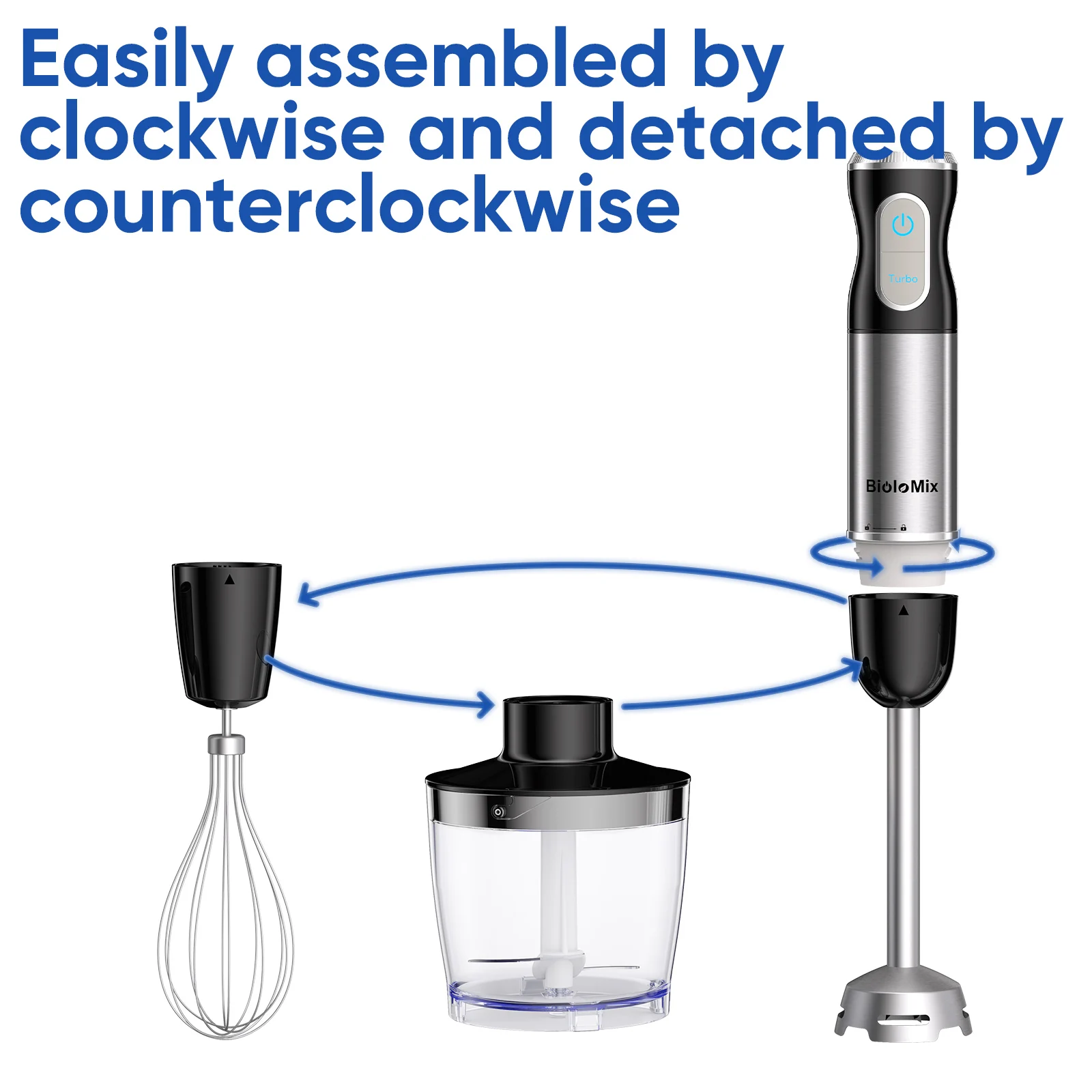 BioloMix 1000W 4-in-1 Immersion Hand Blender | Chopper, Whisk & Smoothie Cup