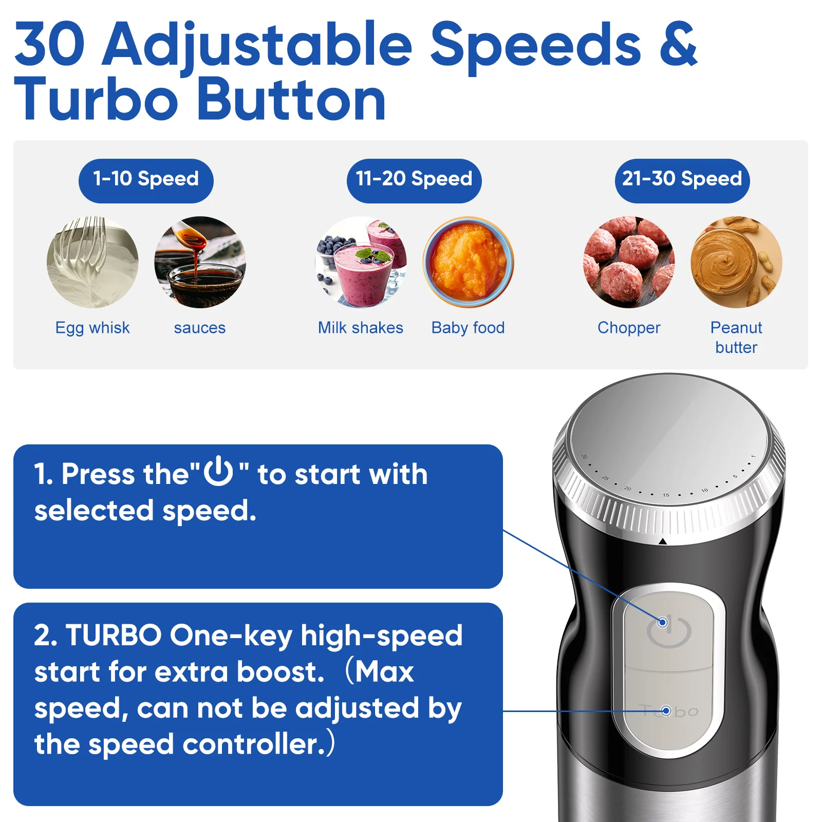 2. POWERFUL BLENDING, EVERY TIME: Adjust the 30 speeds settings using the top rotary knob. Using Turbo mode for an enhanced blending experience, ensuring your smoothies, sauces, and soups achieve the desired consistency consistently.