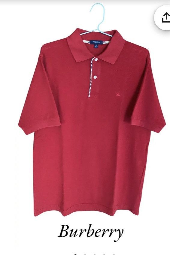 Red polo shirt with vintage check on the neck from Burberry.