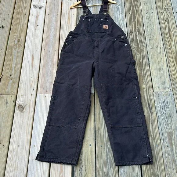 Excellent, preowned conditionRugged and comfortable, these men's heavyweight bibs stand up to hard days on the job. They're made with quilt-lined sandstone duck, which has a soft feel from the start. The double layer at the knees accommodates knee pads, and the back pockets are reinforced to prevent blow-outs