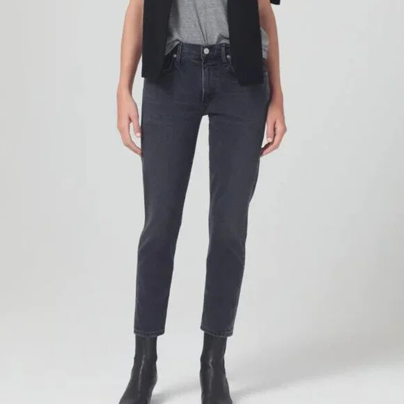Citizens of Humanity Size 33 New with tags from Anthropologie 218$Ella Mid Rise Slim Crop JeansColor film noirWaist measures 19.5" acrossinseam 26.5"Rise 9 3/4"The Ella is cut for a more relaxed mid-rise yet slim-fitting leg that cuts off just at above the ankle. Crafted from stretch denim with an authentic vintage look. Dress them up with heels or down with sneakers.She is the update to one of your favorite fits, the Elsa.This fit is true to size.Looks Like: Washed black denim with clean hemFeels Like: Organic cotton with some slight stretch for comfort and easeFabric: 59% Organic Cotton 40% Ecovero Viscose 1%Elastane