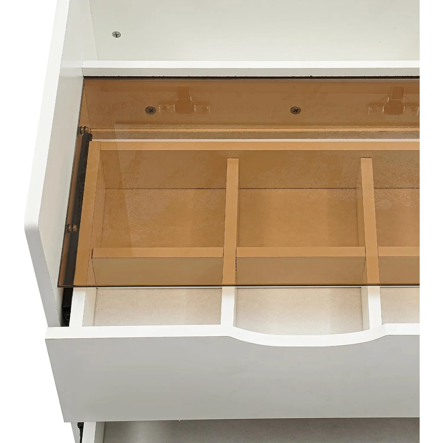 Wake up from your comfortable bed every morning, sit in front of the makeup vanity table, open your beloved items, and the high-definition mirror fully reflects your beauty. Our exquisitely crafted makeup vanity table that combines practicality and aesthetics is something every girl dreams of owning!