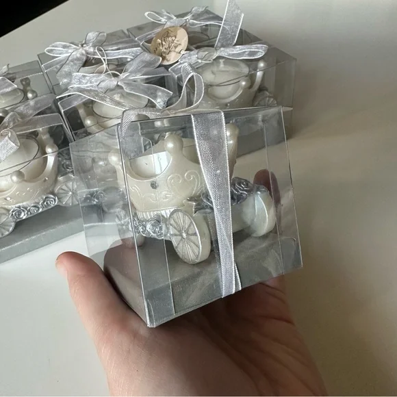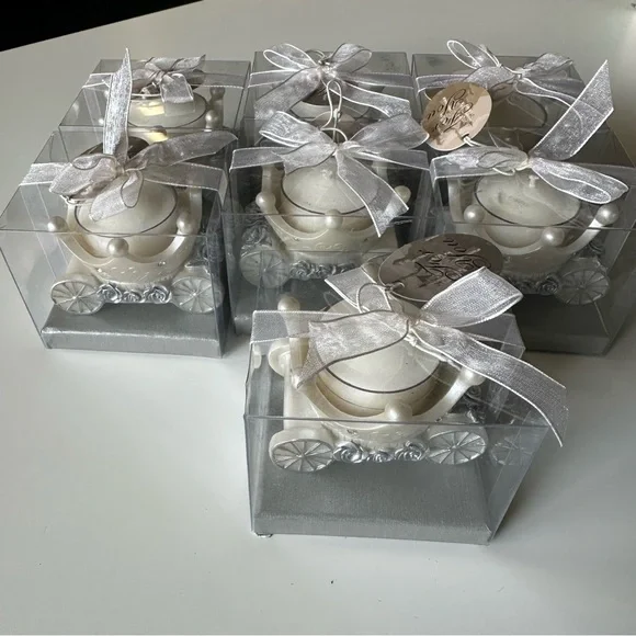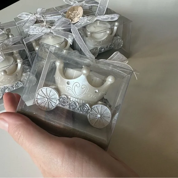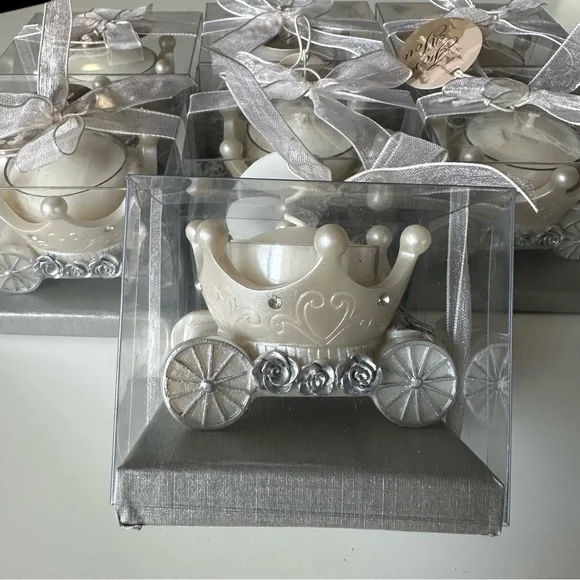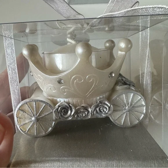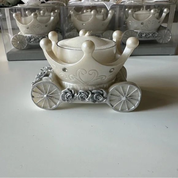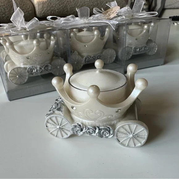 Elegant cream and silver crown carriage candle holder. Perfect for adding a touch of royalty to any decor. Great for weddings or birthday parties. Adorable accent tealight candles. Extremely good quality and heavy pieces still in great packagingParty favor // Party decor // Fairytale wedding // Princess theme