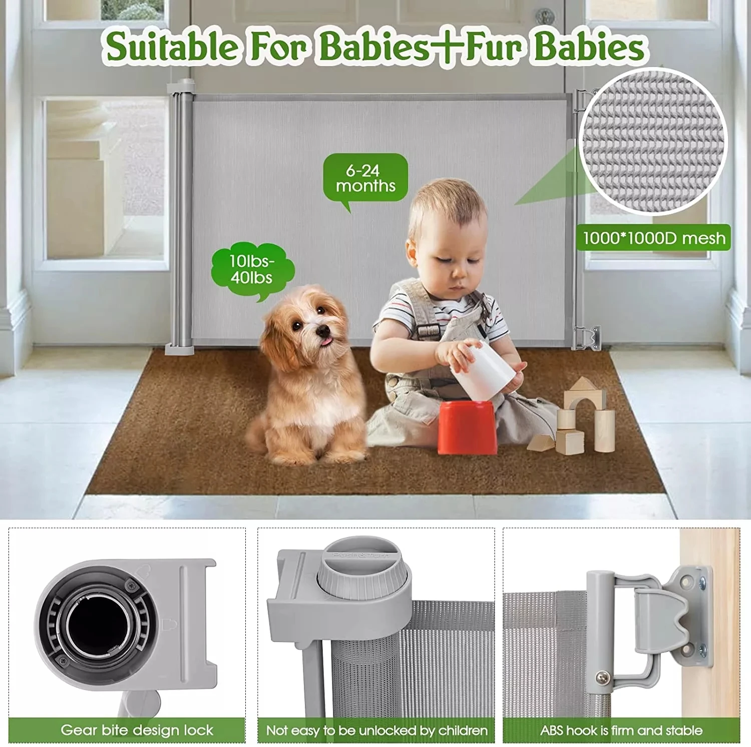 We provide adjustable super wide protective barrier, which is suitable use with both child and pets.