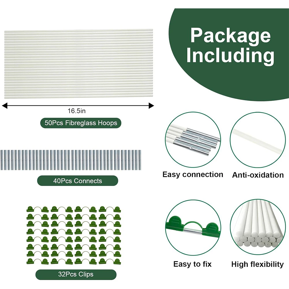 50PCS-50Pcs Fibreglass Hoops+32Pcs Clips+40Pcs Connects