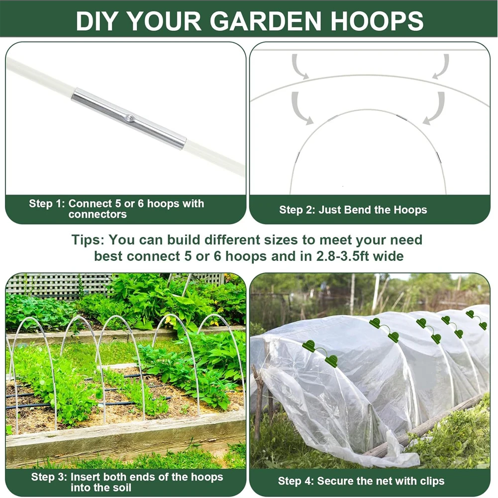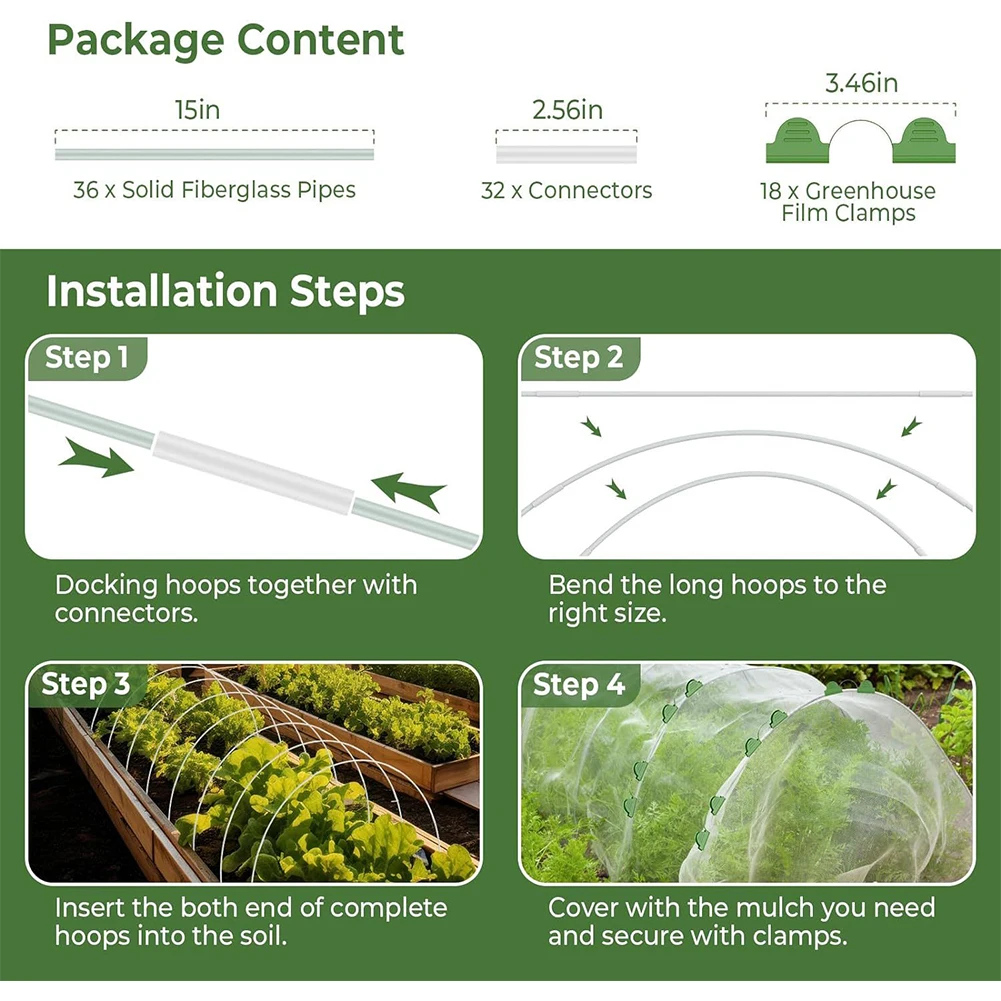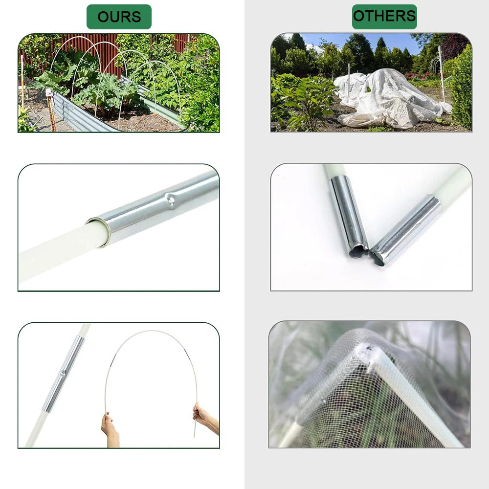 *Construction: Crafted from a combination of fiberglass, metal iron, and plastic, these garden hoops are designed to withstand the elements while offering excellent flexibility and resistance, that longevity throughout the seasons.