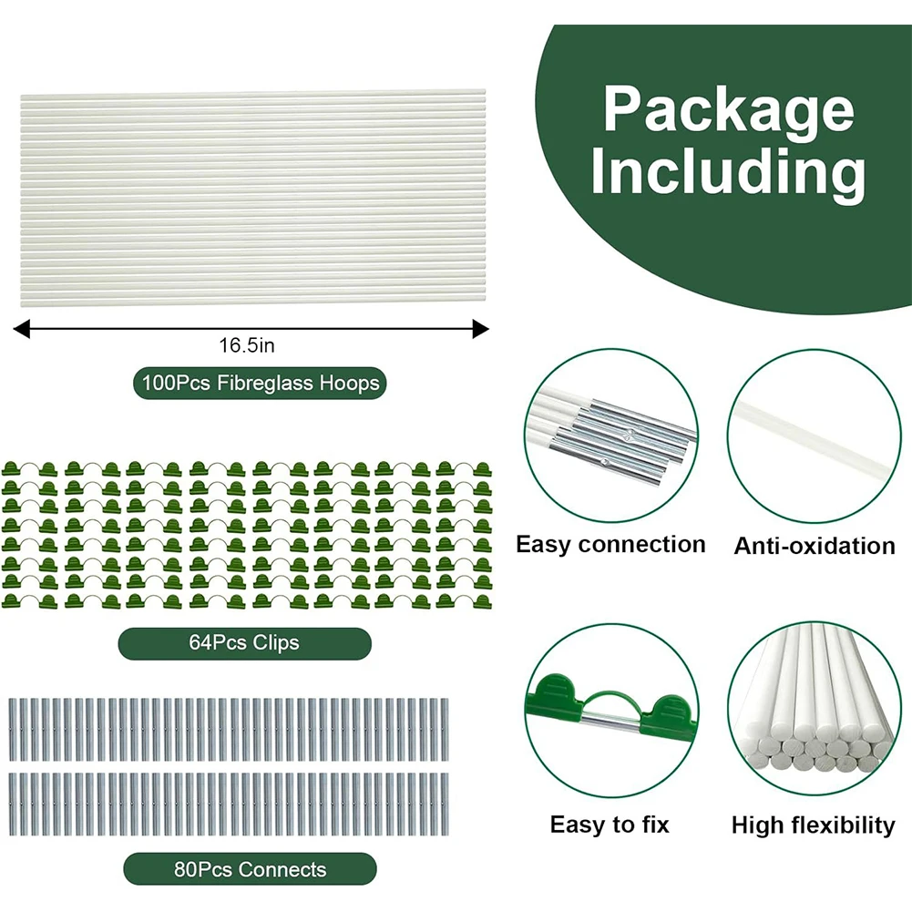 100PCS-100Pcs Fibreglass Hoops+64Pcs Clips+80Pcs Connects