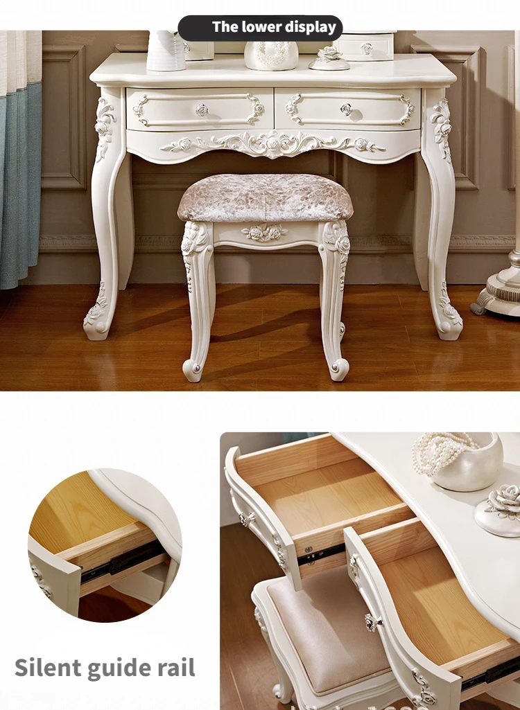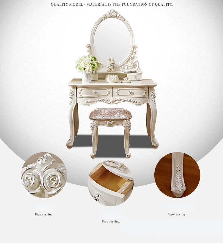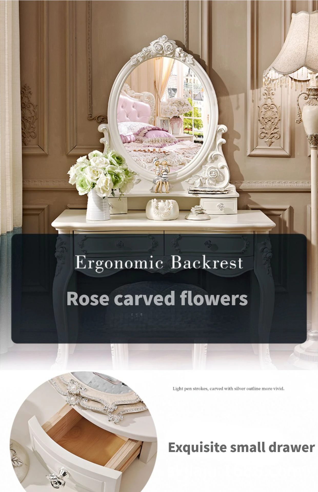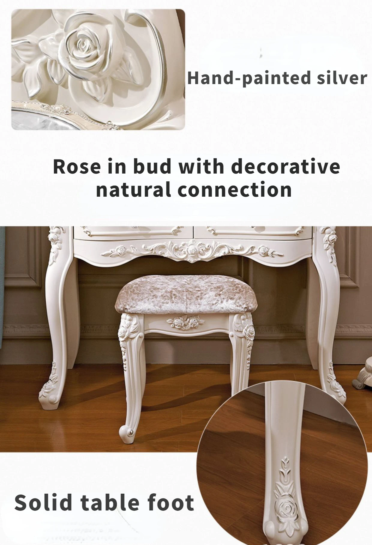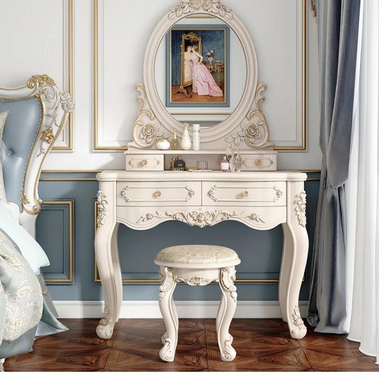European Dressers Vanity Table Set with Mirror White Makeup Desk with Drawers & Stool Small Wood Dressing Table for Bedroom