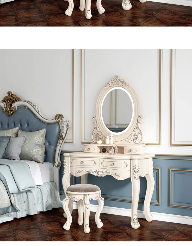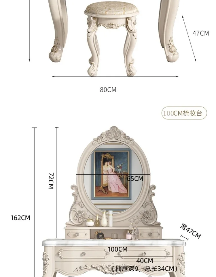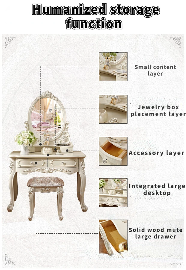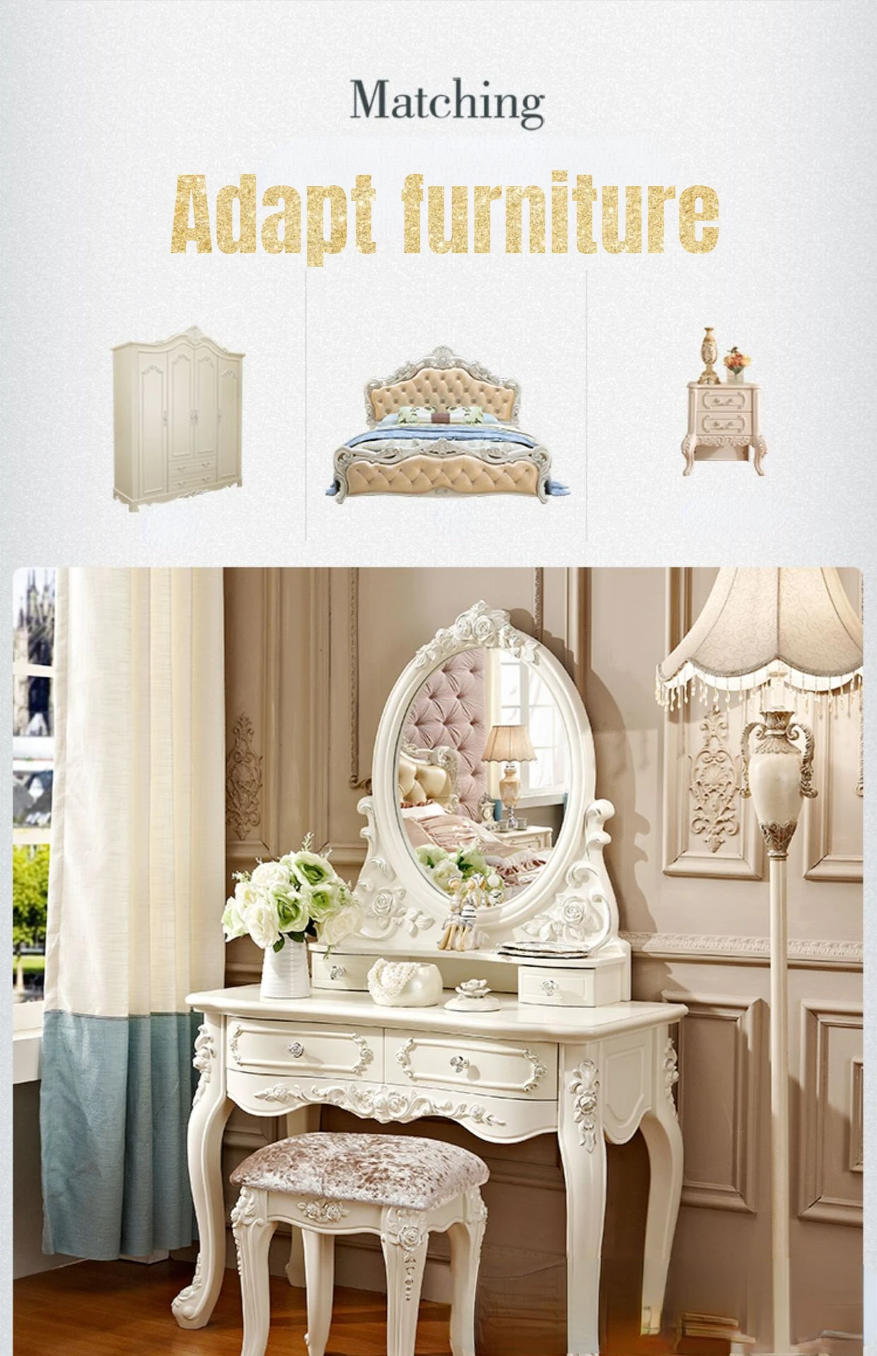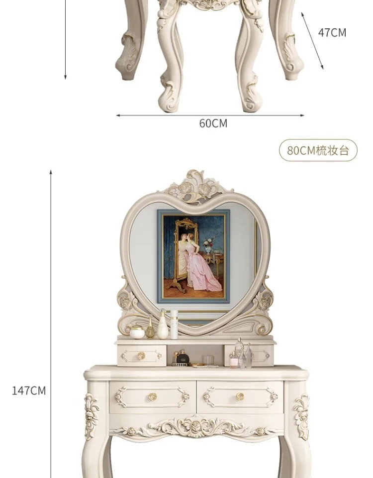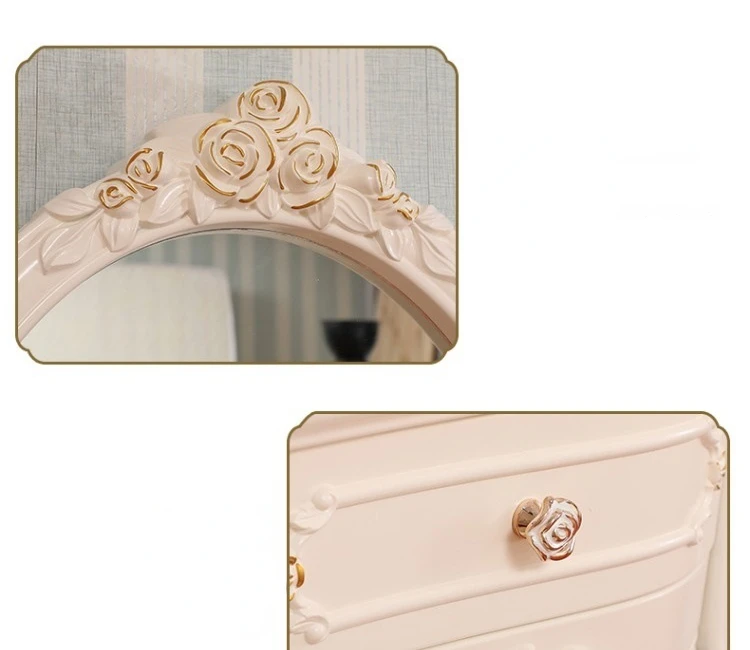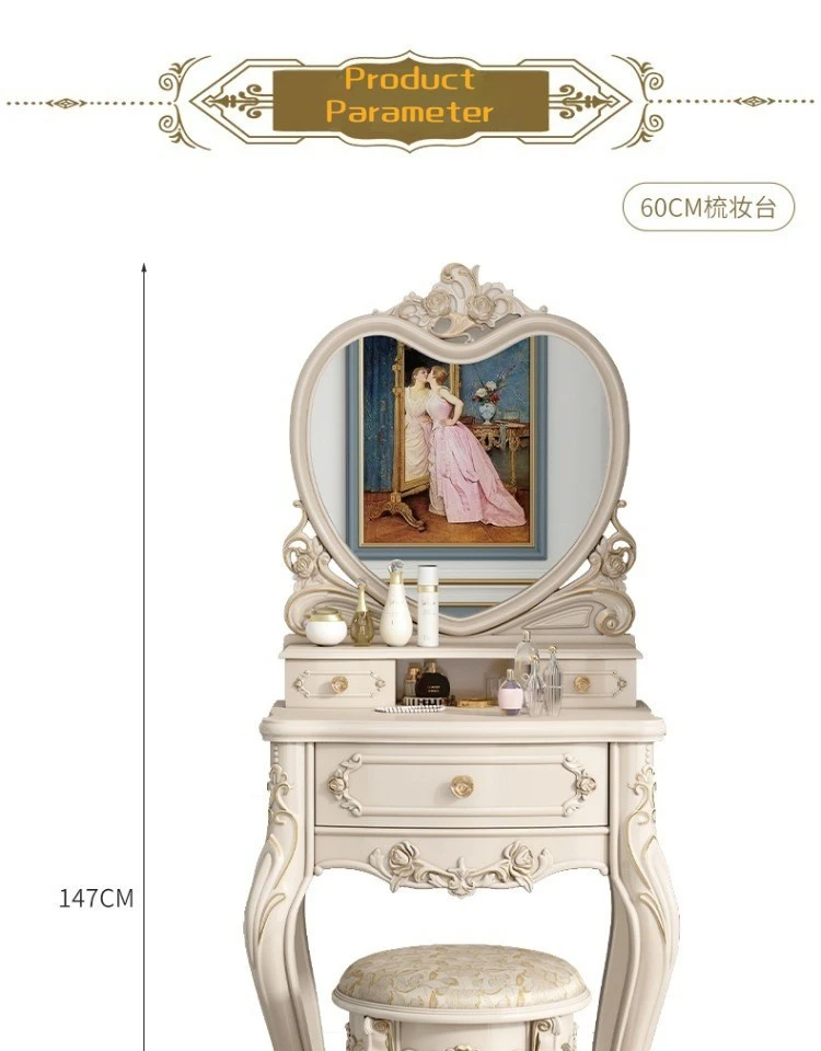 European Dressers Vanity Table Set with Mirror White Makeup Desk with Drawers & Stool Small Wood Dressing Table for Bedroom