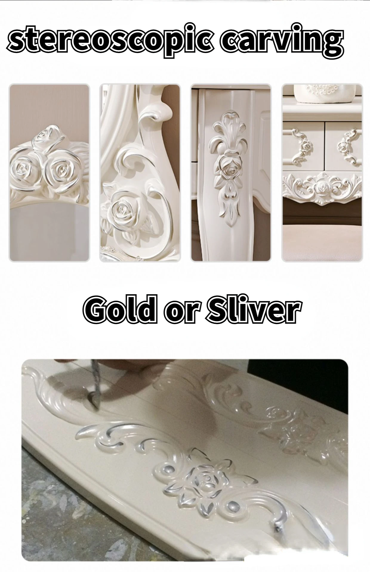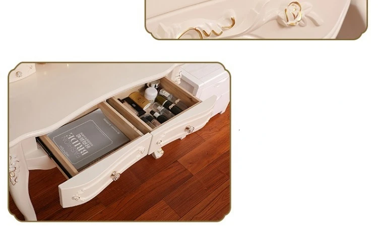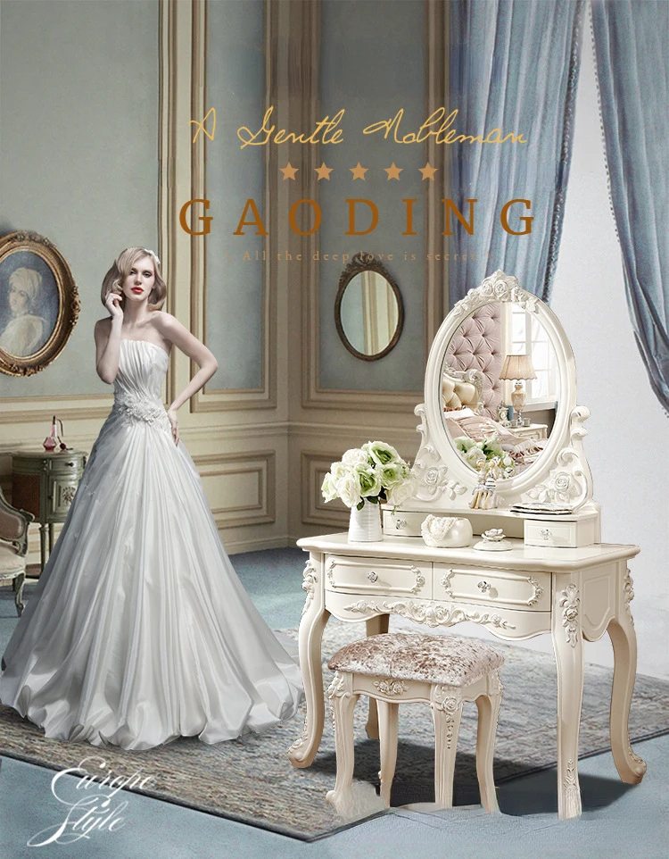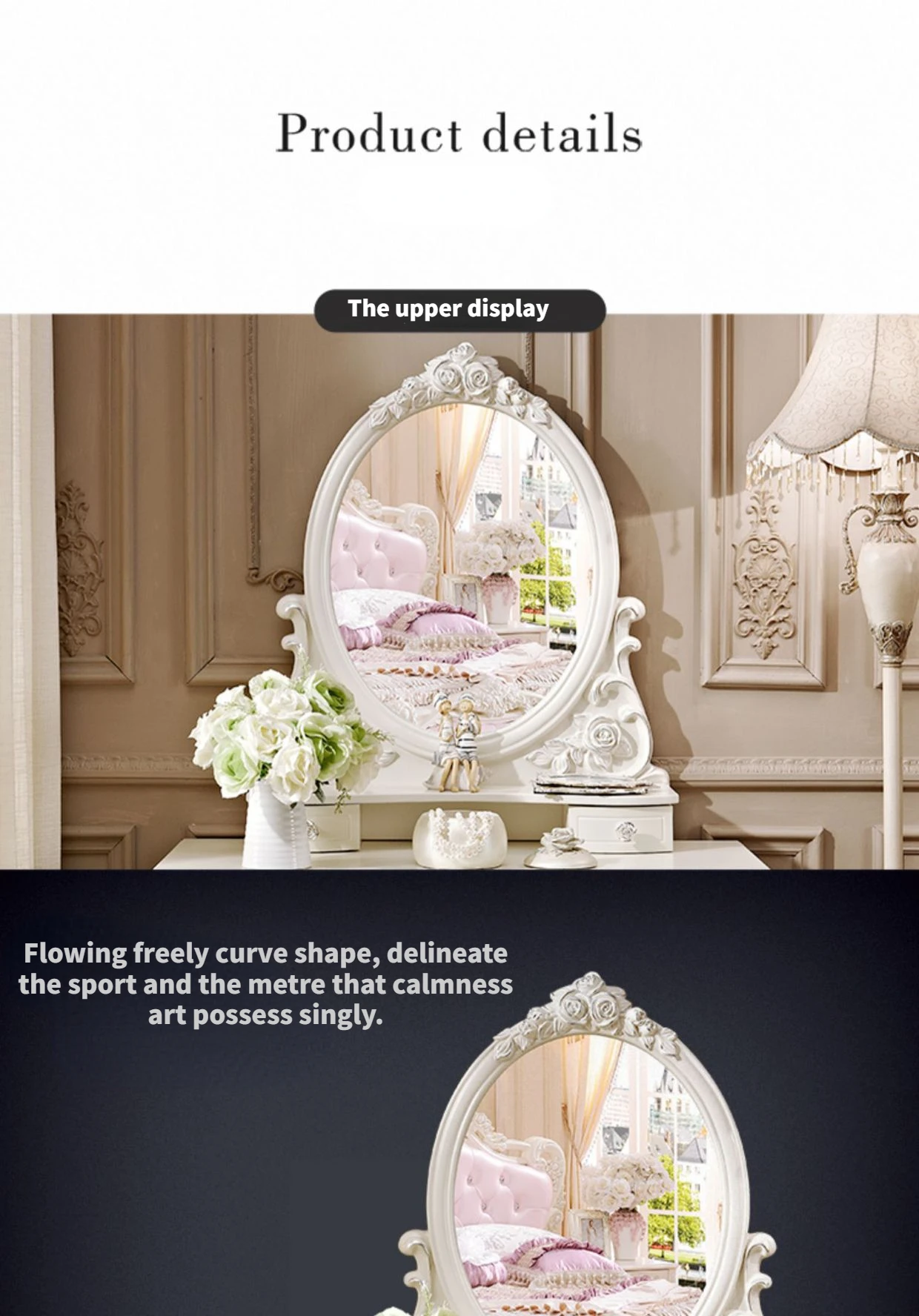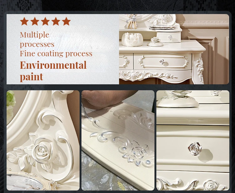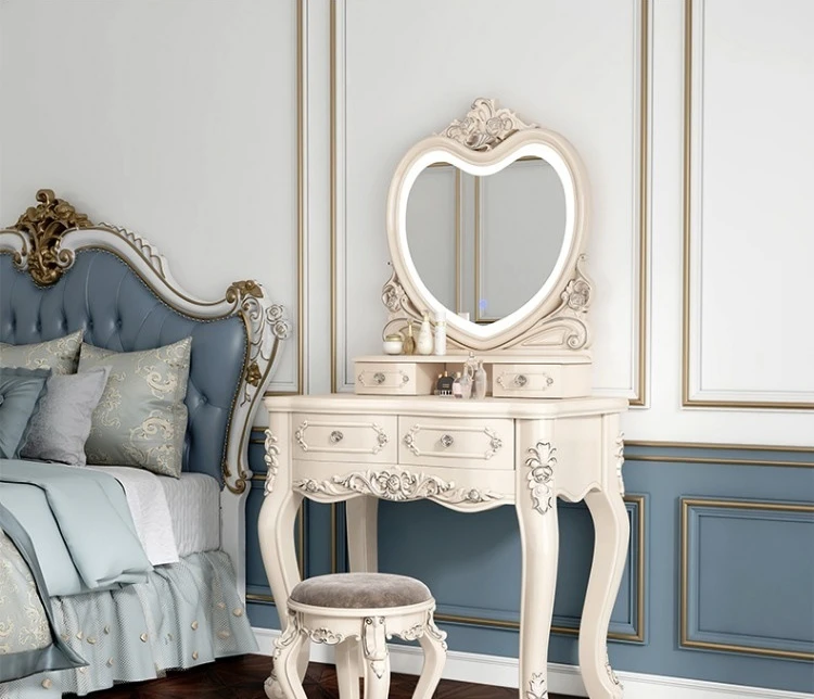 European Dressers Vanity Table Set with Mirror White Makeup Desk with Drawers & Stool Small Wood Dressing Table for Bedroom