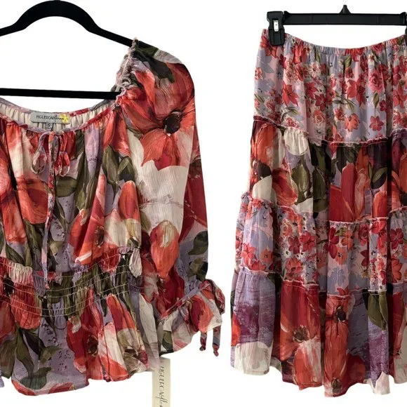Figueroa & Flower Floral Square Neck Blouse & Tiered Skirt 2 Piece SetCondition: NWTBrand: Figueroa & FlowerSize: SColor: Purple; Red; PinkMaterial: 100% PolyesterApprox. Measurements: 16” pit to pit, 20” length, 13” sleeves; 24” waist, 26” lengthOther: Square neck; short sleeves; pullover; classic fit; straight hemOther: Pull-on; elastic waistband; high rise; knee length; full/pleated styleNon-smoking home. Remember to bundle with other items from my closet for the best deal! And as always, thanks for checking out my closet!