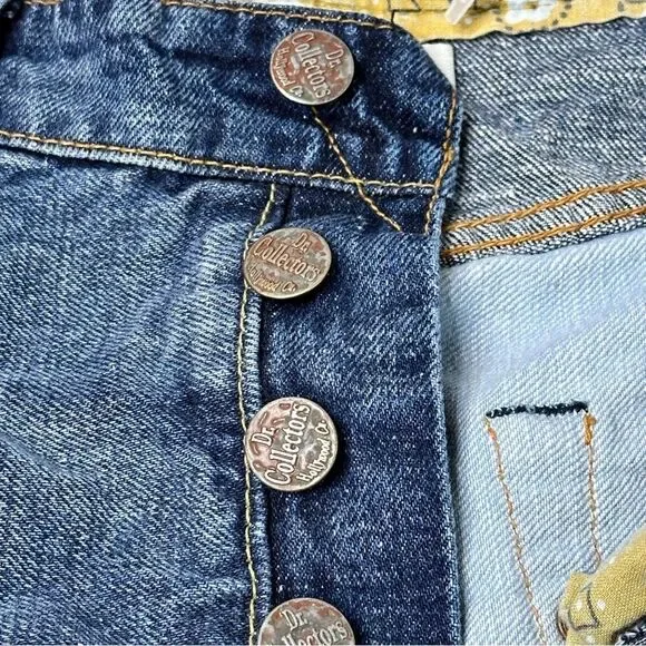 Free People x Dr. Collectors Denim Patchwork JeansMSRP $398So special in a slouchy silhouette, these effortless jeans from Dr. Collectors feature exaggerated patching throughout designed using four different types of Japanese denim and levels of indigo with exposed seaming for added dimension. Each pair is created using a unique, individual wash to give the effect of authentic vintage denim.* 100% Cotton* Button-front closure* Five pocket design* Straight-leg silhouette* Machine Wash Cold* Made in the USA* Size L* New with tagsMeasurements:* Waist: 34”* Rise: 12”* Inseam: 30”* Thigh: 12”* Leg Opening: 8”What’s Care FP? This product was consciously made to reduce our footprint and supports our mission to be a little bit better every day.Specifically, this product is Artisan Made. It is thoughtfully crafted by an artisan partner, which includes 501(c)3 nonprofits or small businesses around the world that create hand-touched, unique pieces in small batches under ethical conditions.Dr. CollectorsUsing traditionally American manufacturing, Dr. Collectors aims to produce the highest quality clothing and accessories. All garments are constructed in California. They are designed with a sincere attention to detail, a focus on lasting construction, and each piece includes its own unique, yet subtle mark of craftsmanship.
