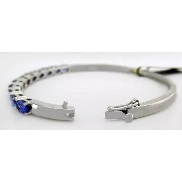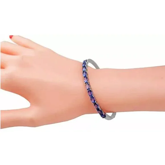 Karat : .925 Sterling SilverGemstones : 36 Genuine Tanzanite - 0.15 ct each Total ct weight : 5.40 caratsTanzanite grades,Hue . . . violetish-blueTone . . . medium Saturation . . .vividCut . . . goodSome minor natural inclusionsSetting : prongShape : oval Net weight : 7.4 gramsBox insert lockDimensions : 6.5" Long Appraisal available for a low cost of $25.00 (request this service if you are interested)