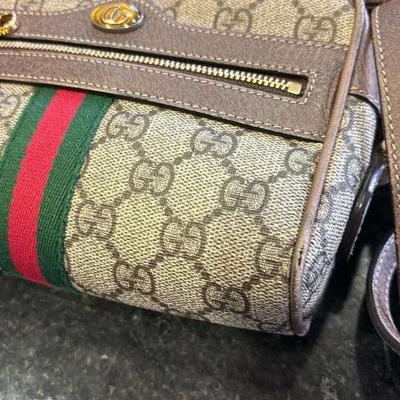 🌟 Gucci GG Supreme Mini Ophidia Crossbody Bag 🌟Description•Gucci Crossbody Bag•Neutrals•Printed•Gold-Tone Hardware•Leather Trim•Single Adjustable Shoulder Strap•Leather Trim Embellishment & Single Exterior Pocket•Suede Lining & Single Interior Pocket•Zip Closure at TopEstimated item measurementsShoulder Strap Drop Max: 27"Shoulder Strap Drop Min: 23.25"Height: 4.5"Width: 7"Depth: 2"Color: NeutralsItem#: 7hggg5/645Condition is Great! See photos for minor scuffs at piping