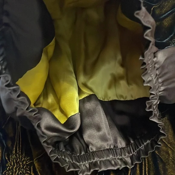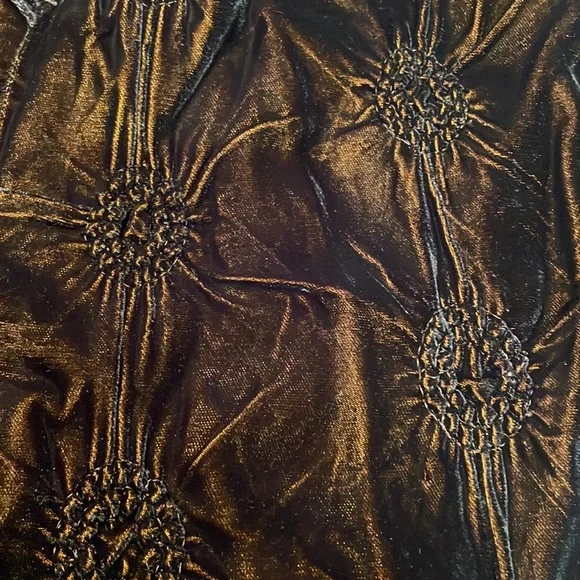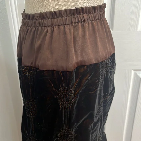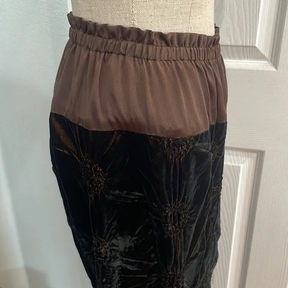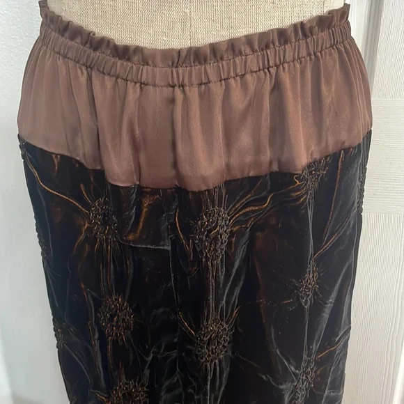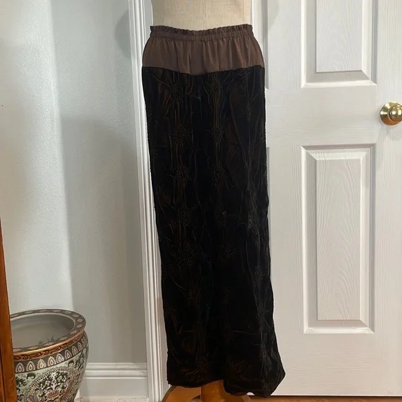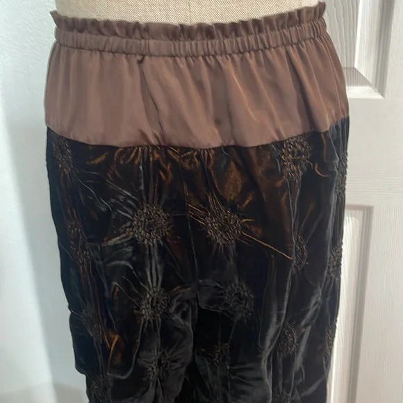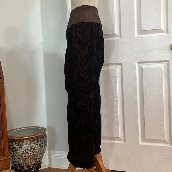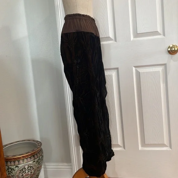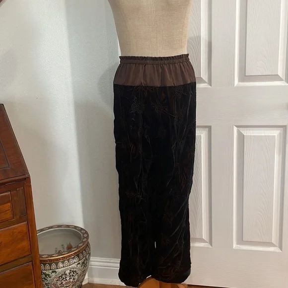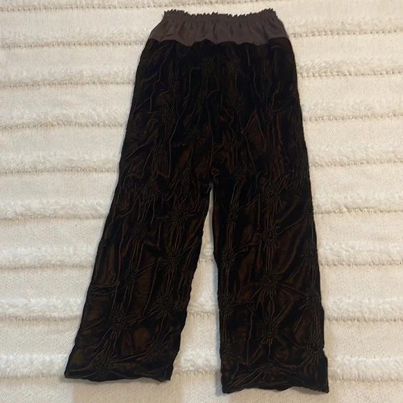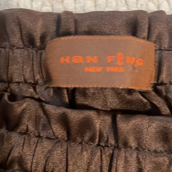 This vintage Han Feng velvet high waisted dress pants are a must have for any fashion conscious womanWith it's high waist and flare leg, these pants are perfect for any occasion and very comfortable to wearThe elastic waist and gold color lining offer comfort while the brown textured velvet fabric adds texture and styleNo size tag but these are designed for petites and fit about a size 8P; please see measurements below for the best fit.Elastic waist 12 1/2 inches unstretched Rise, 13 inchesInseam 23 inchesLength 35 1/2 inchesLeg opening 9 inchesThese measurements are subjective New to poshmark? Sign up using our referral code wrappingitup for $10 towards the first purchaseHan Feng is known for it's quality and luxurious clothing.Get these rare and extremely hard to find dress pants here, while they last, from our smoke-free businessAsian, bohemian, textured, lined, elastic waist, stretch, textured, wide, leg, designer, Petite, satin, velvet, formal, dress pants