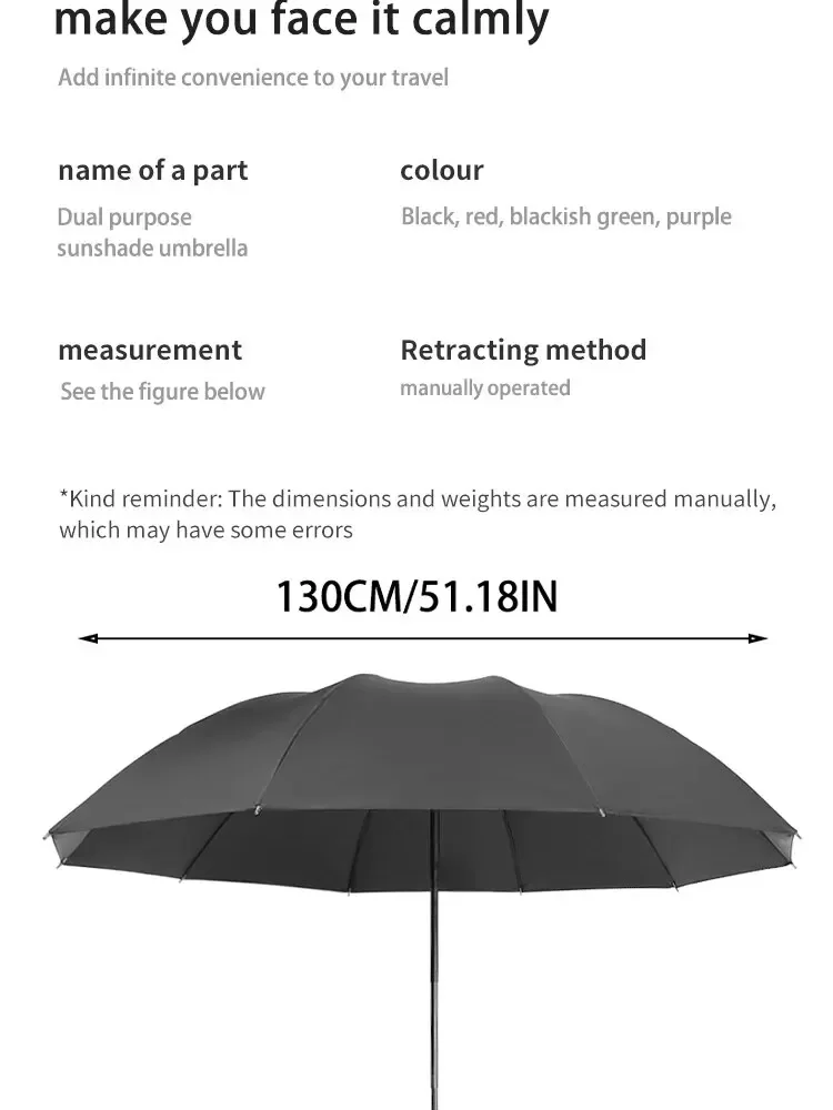 Cobertura de dosel grande:Este paraguas manual está diseñado con una amplia cubierta de 130 cm de diámetro, que puede cubrirle a usted y a las personas que lo rodean, brindándole un espacio espacioso y cómodo.