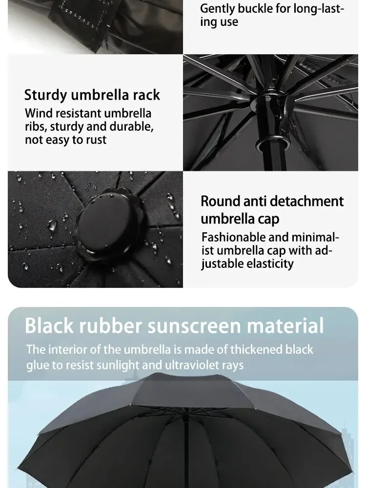 Fuerte soporte de esqueleto:Con 10 huesos fuertes para garantizar la durabilidad y estabilidad del paraguas.