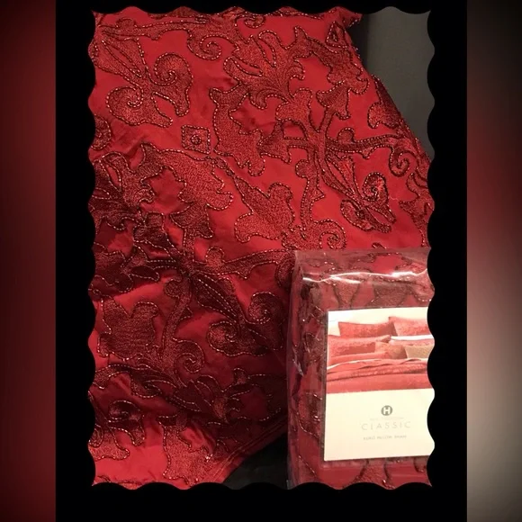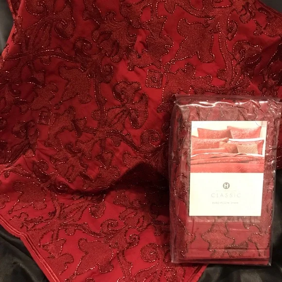 〰️Add a touch of luxury to your bedroom with these Hotel Collection Classic Ornate Scroll EURO Embellished Pillowshams in a beautiful shade of red. Made of 100% cotton and beaded with intricate details, these pillow shams are perfect for adding a pop of color and style to your bedding. The zip closure ensures easy removal for machine washing, making maintenance a breeze. Ideal for any bedroom, these pillow shams are sure to impress.〰️•Beaded•Embroidered•Textured•Zip Closure•26x26•Retail $135