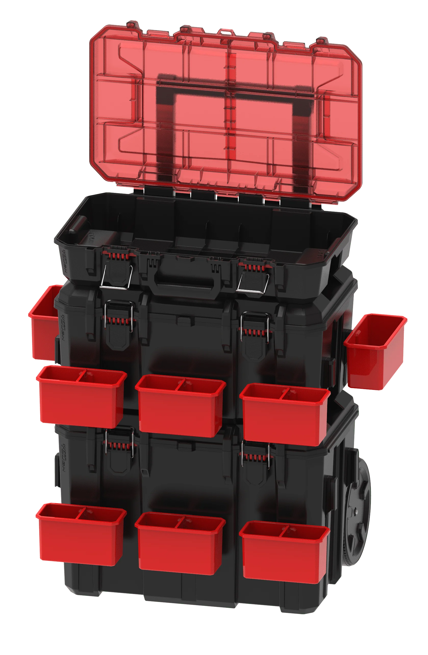 • Set includes: Top Organizer Box, Large Tool Box, and Rolling Tool Box for storage and pack out needs
