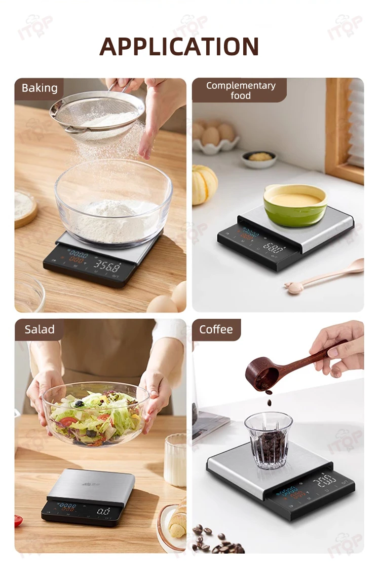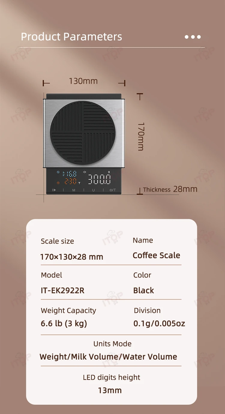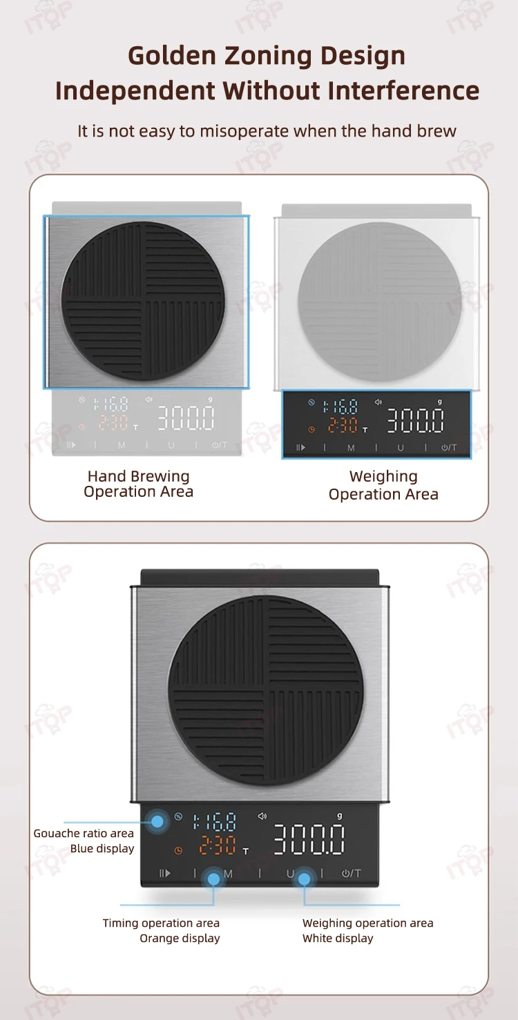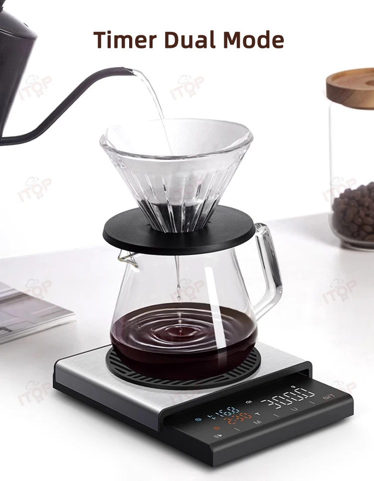 ITOP 2922R Coffee Scale 0.1g/3kg Accurate Weighing Timing Function Gouache Ratio Display Automatic Water Filling Timing