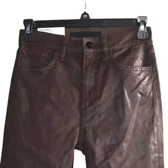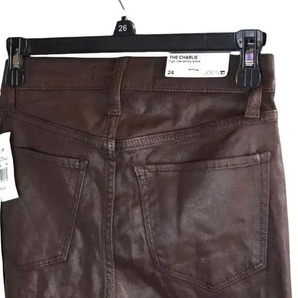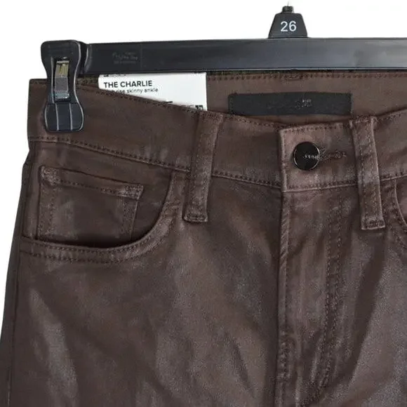Soft sateen with a sleek coated finish brings the look of leather to the high-rise skinny fit of our Charlie Ankle. Offered in an array of rich colors for the season, the five-pocket pair has stretch to ensure a flattering shape that feels great and lets you move with ease.10" RISE52% cotton.45% modal.3% elastane.Machine wash cold inside out with like colors; gentle cycle.Do not bleach.Line dry.Low iron inside out if needed.Size 24-Flat Waist: 12.75"-Flat Hips: 15.5"-Flat Thigh: 8"-Inseam: 28"-Length: 37.75"193653489602Size 25-Flat Waist: 13"-Flat Hips: 16.5"-Flat Thigh: 8.75"-Inseam: 28"-Length: 38.5"193653489619