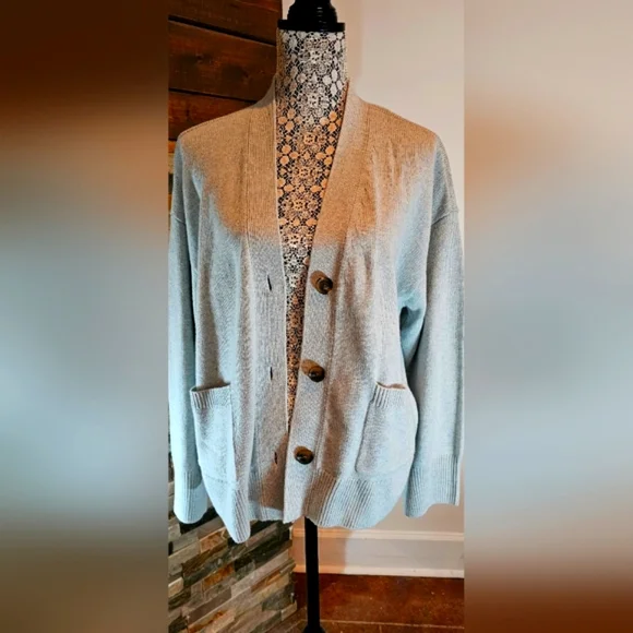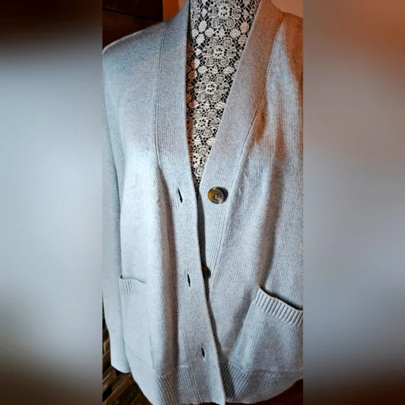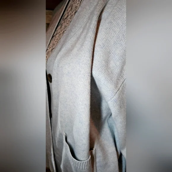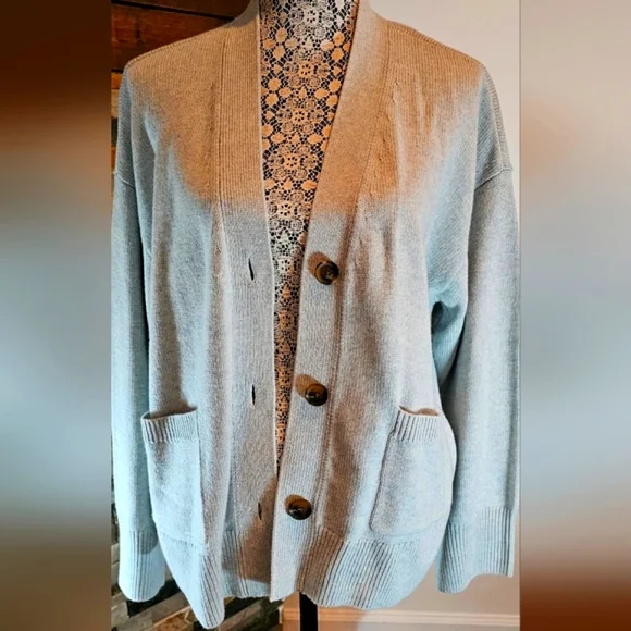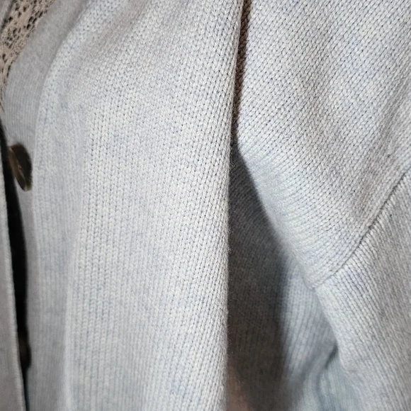 New and Never worn! Johnny Was Calme Spun from an insulating wool cashmere mix, the Calme Cardigan is the image of stylish simplicity. This cardigan features long sleeves, a front button closure, and front pockets. Style this cardigan with the matching boxy pants and a tee for a relaxed off-duty ensemble.Pit to Pit 23"Cashmere30%Wool 70%Beautiful Heathered Light Blue**Available in Heathered Blue and Gray**The last photo is provided to better show the colors, especially the light blue.