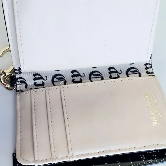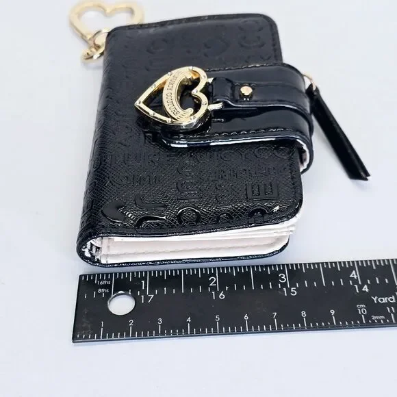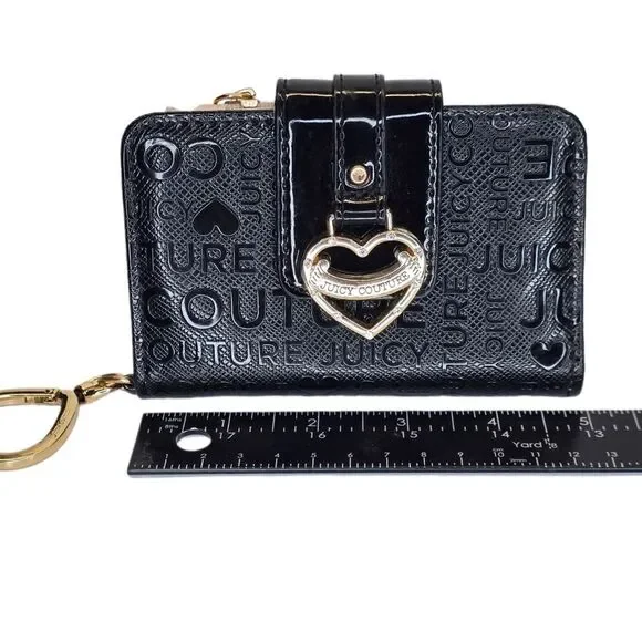 Compact patent leather wallet with gold heart charm closure. Features card slots, ID window, and zip coin pocket. Interior lined with signature Juicy print. Perfect for everyday use, nights out, or as a gift. Gold-tone hardware adds elegant touch. Good condition.Type: Card WalletColor: BlackDepartment: WomenFeatures: Credit Card, FoldingMaterial: Patent Leather, Faux LeatherCharacter: Glam, Y2K, Juicy Girl, FashionistaAccents: Logo, Zipper, ButtonPattern: SolidKeywords: juicy couture wallet, patent leather wallet, heart charm, card holder, small wallet, designer wallet, gold hardware, compact wallet, bifold wallet, y2k accessoriesFast shipping. 30 day returns. Please see photos for more details and measurements if needed. Message me with any questions.