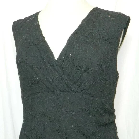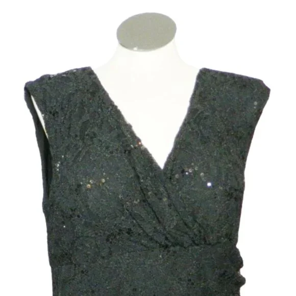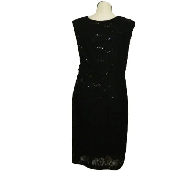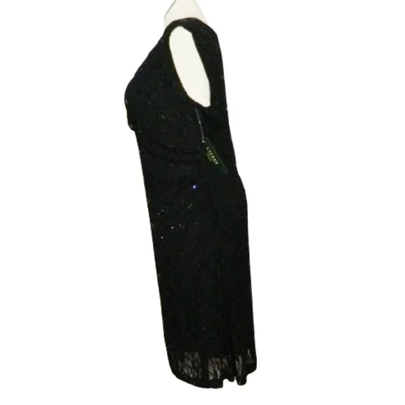 Lauren Ralph Lauren Dress $190 Plus Black Embellished Special Occasion 16W NWT!SleevelessV Neck with Halter style bustLace overlay with scattered sequinsSlightly ruched on left sideShell - 58% Nylon / 40% Polyester / 2% ElastaneLining - 95% Polyester / 5% ElastaneOverall Length 22"40"Across the front of the chest
