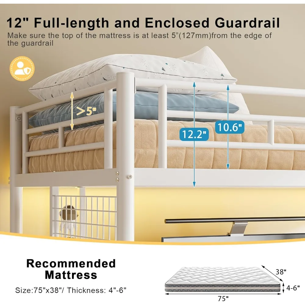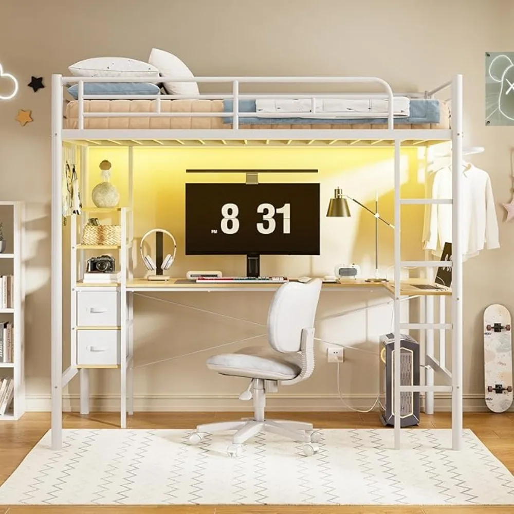 - Loft Bed with Desk: The twin loft bed has two independent spaces. Besides being able to rest, the 59.25-inch space under the bed provides more personal space for work or leisure. The double-layer design also saves a lot of indoor space