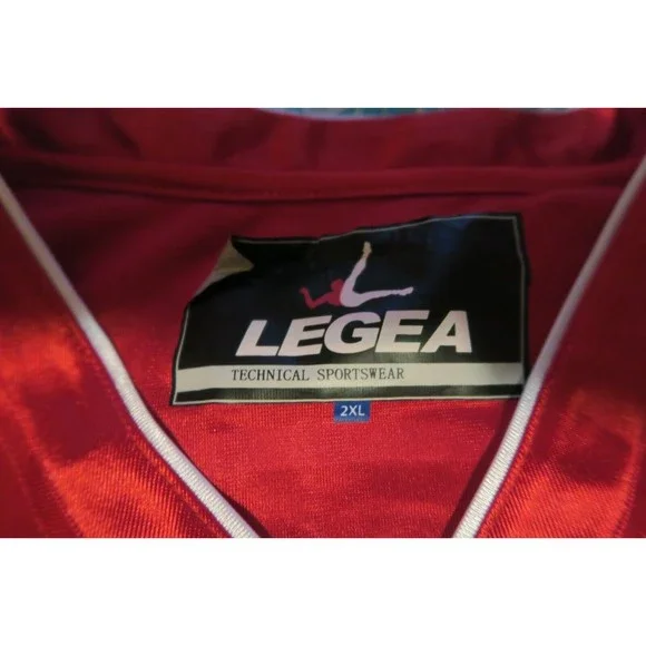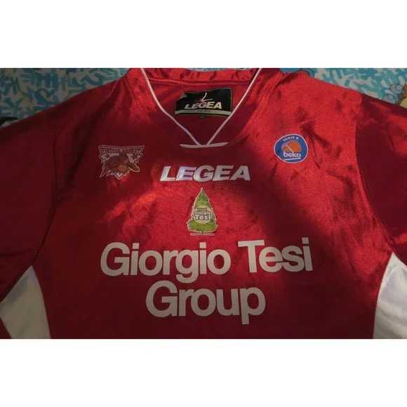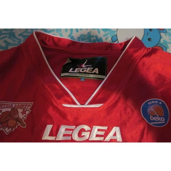 Condition: Few spots on body. Logo on back has some peeling.Description: Legea spellout embroidered on front chest and sleevesGiorgio Tesi Group spellout and logo on frontPistoia Basket 2000 Bears logo on front middle and right chestSerie a Beko logo on left chest#11 jersey number on front lower rightSponsor logos on back100% PolyesterMeasurementsPit to Pit: 23.5"Top of shoulder to hem: 34"