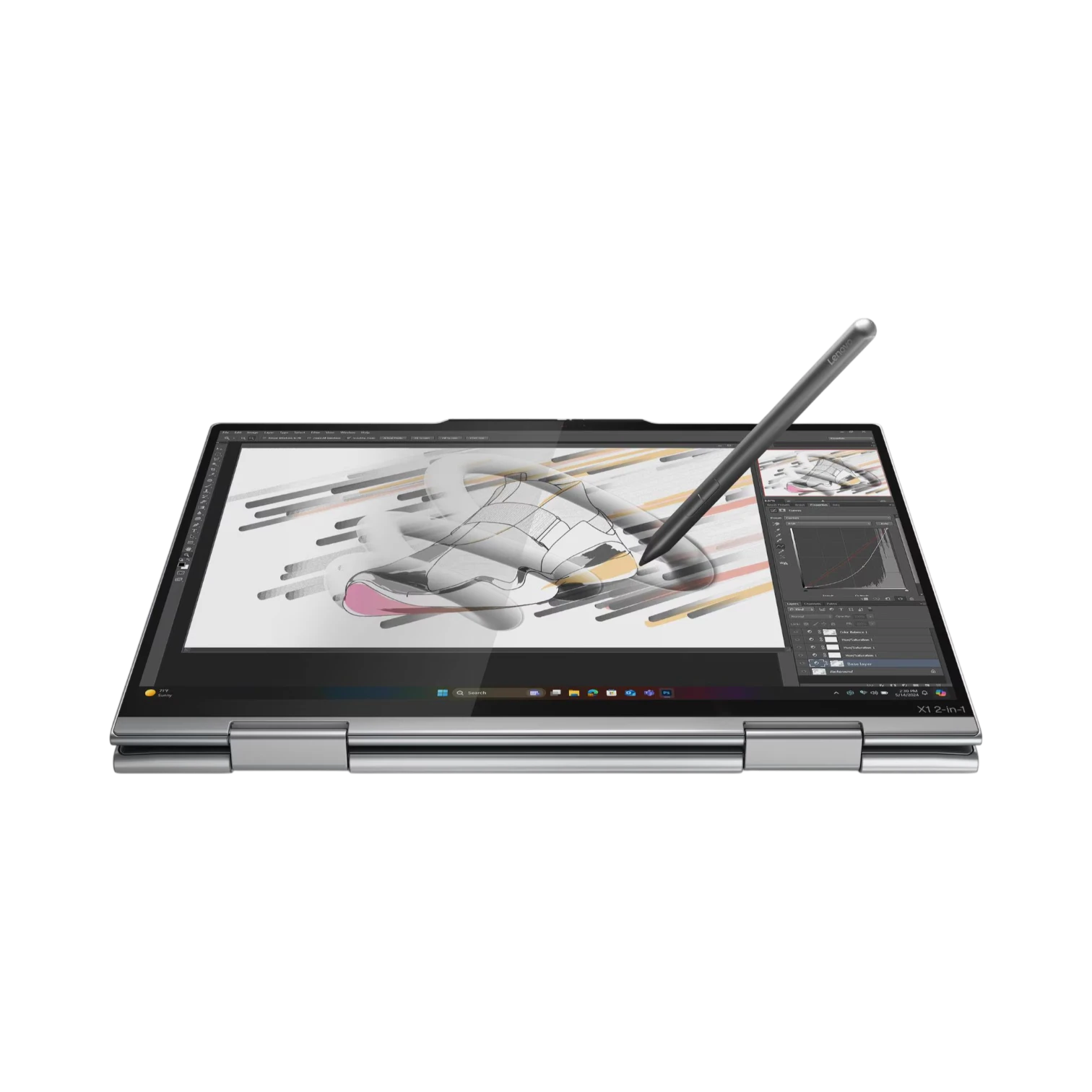 The Lenovo ThinkPad X1 Gen 10 is a 14" multi-touch 2-in-1 laptop powered by the Intel Core Ultra 7 258V processor with integrated Intel Arc Graphics and a 47 TOPS AI engine. It includes 32GB of LPDDR5x RAM and a 512GB PCIe 4.0 SSD. The display is a 1920 x 1200 IPS touchscreen panel with 500 nits brightness and 100% sRGB color coverage. Connectivity includes Wi-Fi 7, Bluetooth 5.4, two Thunderbolt 4 ports, HDMI 2.1, and two USB-A ports. Security features include a fingerprint reader, IR facial recognition, and TPM 2.0. It is suited for demanding workflows in hybrid environments.