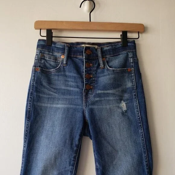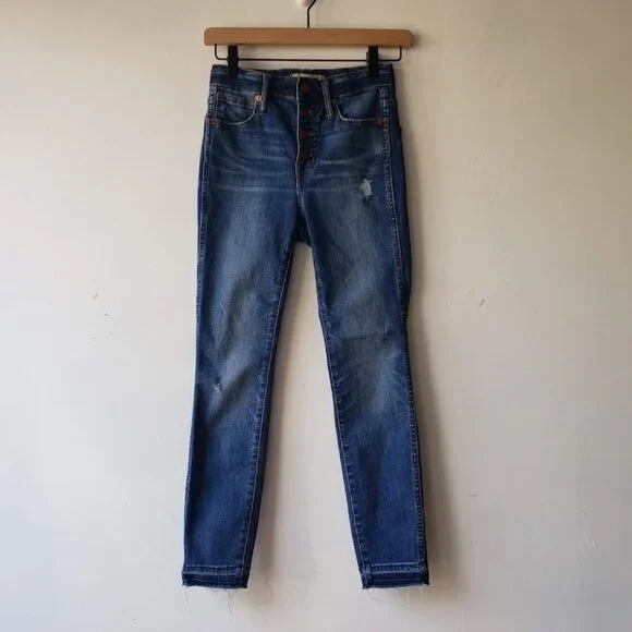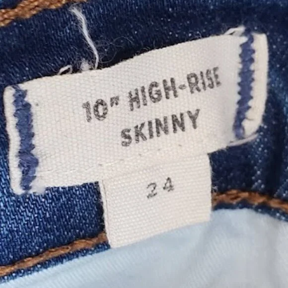 BRAND: MadewellDESCRIP: 10" High Rise Skinny Button Fly JeansSIZE: 24APPROX MSMTS: rise: 10"flat waist: 12"inseam: 25.5"FLAWS: none visibleCONDITION: no rips/holes/stains. excellent pre-owned⬇️ FOLLOW FOR MORE ⬇️INSTA: @jlynnfarmer➡️ This item is pre-owned➡️ Will ship within 1-2 biz days➡️ REASONABLE Offers & Bundles welcome!🏷️ buttonfly j crew gap mother