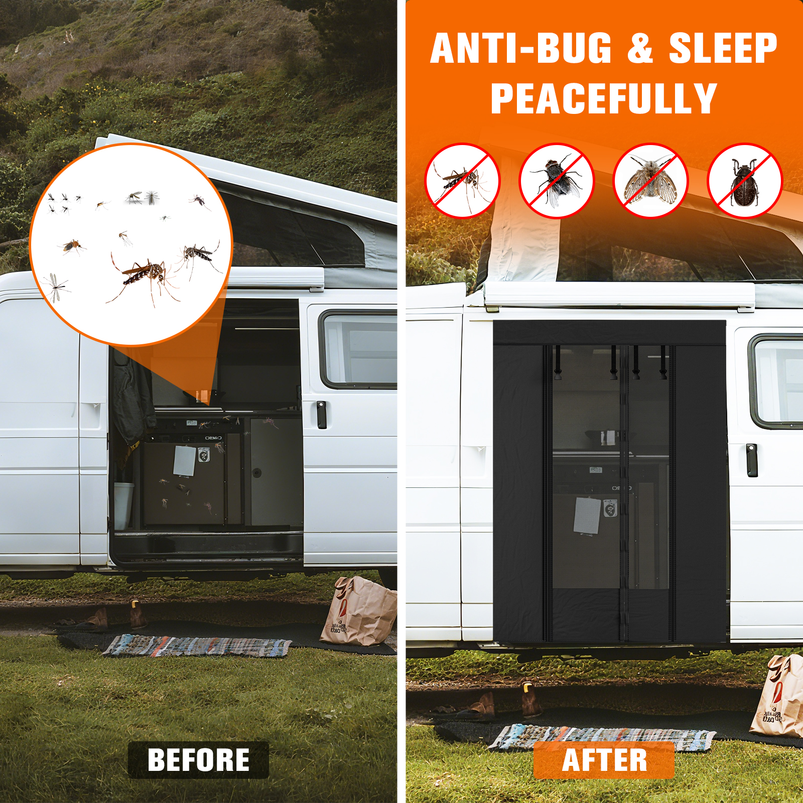 Magnetic Screen Door, Mosquito Net Compatible with VW T5, T6 for Sliding Door, Fly Screen Insect Protection and Sun Protection, Side Door Shade Net Camping