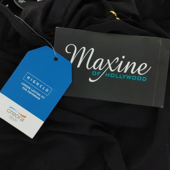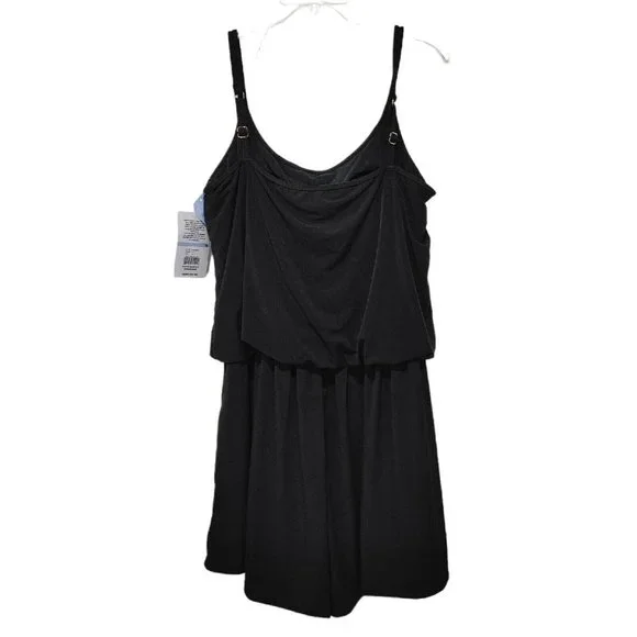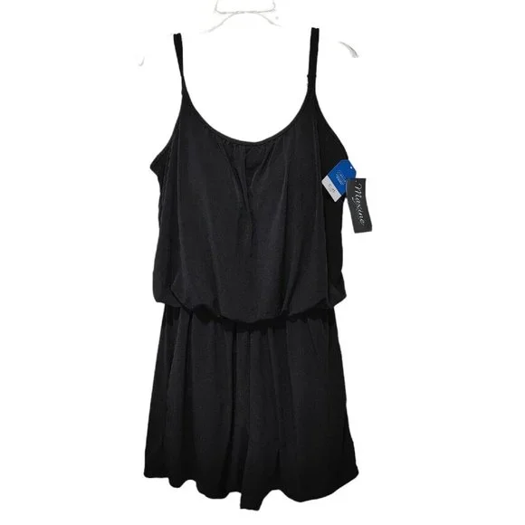 Maxine of Hollywood Black Jersey Swim Romper One Piece/Cover Up Size 18New with tagsApproximate measurements taken with the garment laying flatArmpit to armpit 19.5" (unstreched)Waist 16" (unstreched)Shoulder to hem 35"Perfect for summertime, this swim romper/cover-up by Maxine of Hollywood is sleek and chic.A gathered waist is flattering, while adjustable straps accommodate your perfect fit.FEATURES:• Swimsuit / cover up• Built-In Panty• Romper one piece• Molded cups• Adjustable straps• WirelessStyle MM9MD45FABRIC:82% Nylon, 18% ElastaneCARE :To help your swimsuit last longer wash immediately with cold fresh water after each use, and let drip dry naturally.1lb 5oz USPS MailR2-17
