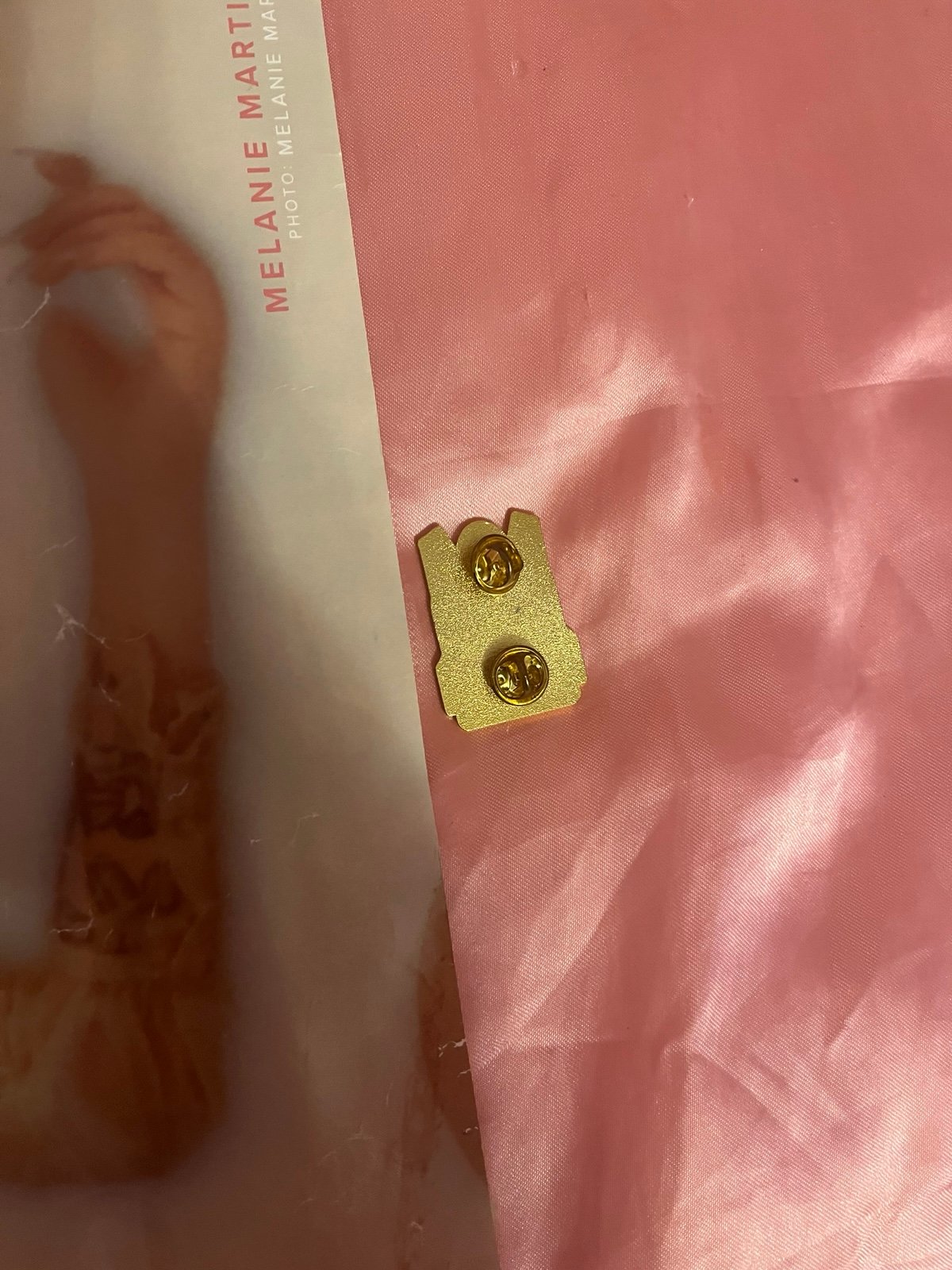 Selling My Melanie Martinez Ap poster and rare afterschool backpack pin, I’m really hesitant to sell it as I didn’t intend to but I’m in desperate need of funds and would rather it go to someone who is actively collecting her merch. The pin is in nearly like new condition, no rusting from what I can see on my part, it also comes with its original two backings. The poster is pretty damaged as it has rips, cracks, and other damage, please look at the photos carefully to see it’s full condition, it also has tape on the back that I don’t want to remove in fear of imaging it further, it will be packaged securely along with the pin to protect it during shipping, but I’m also not responsible for anything that possibly could happen after shipping! Not really looking to take offers as I really need the money!