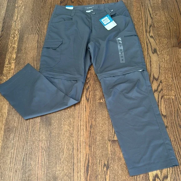 COLUMBIA Men’s Silver Ridge Utility Convertible Pants City Gray Size 34x30New with TagsOmni-Shade™ Broad Spectrum UPF 50 protects against skin damage using select fibers and fabrics to block a wider range of UVA/UVB rays, so you stay safer in the sunOmni-Wick™ keeps you dry and cool by pulling moisture to the fabric’s surface to evaporate, delivering fast-drying, next-to skin comfort in the heatZip off legs convert pant to 9-inch inseam shorts for versatile wearArticulated knees provide more room to bend and kneel comfortablyCrafted with recycled materialsPartial elastic at waist for a custom fitRemovable belt for versatilityZippered security pocket on left leg securesHand pockets